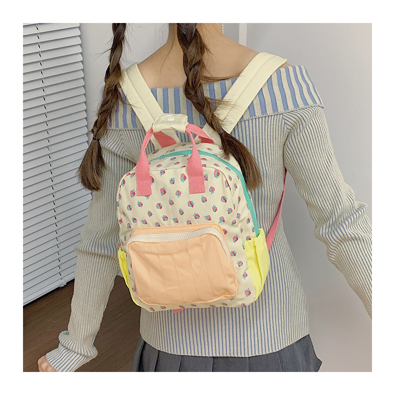 새로운 캔버스 딸기 배낭 어린이와 소녀 도파민 색상 매칭 귀여운 캐주얼 여행 스쿨백 캠퍼스스토어 가기