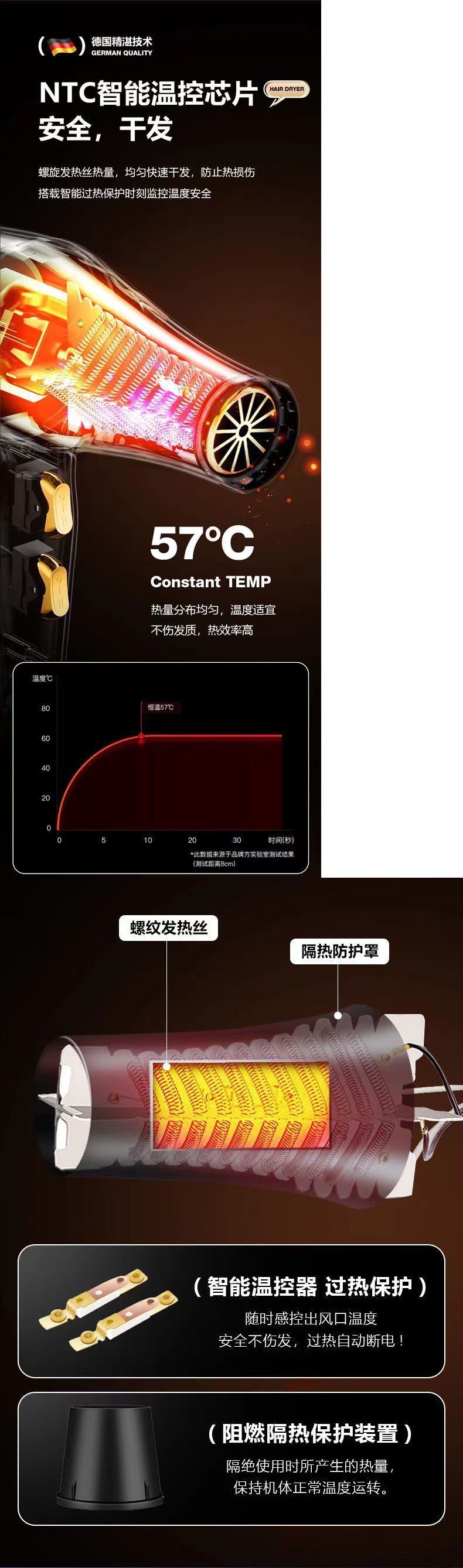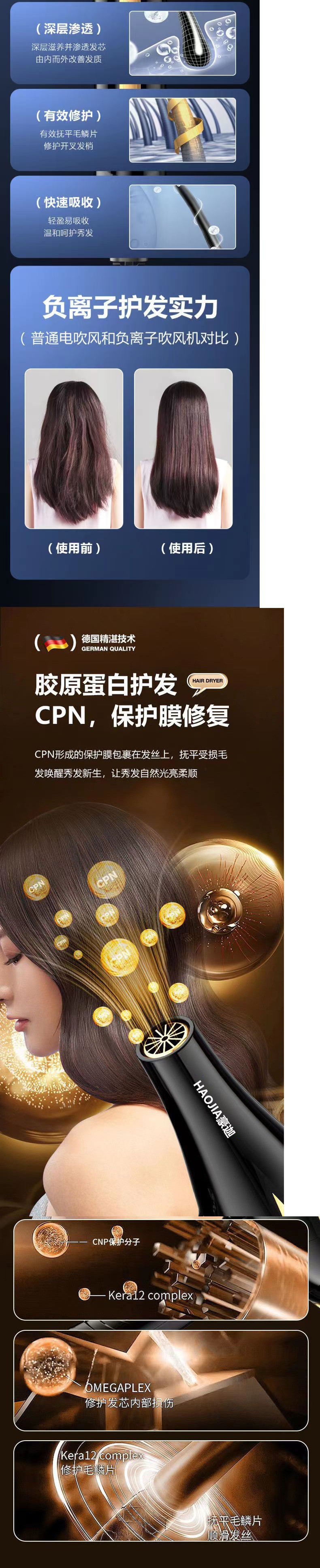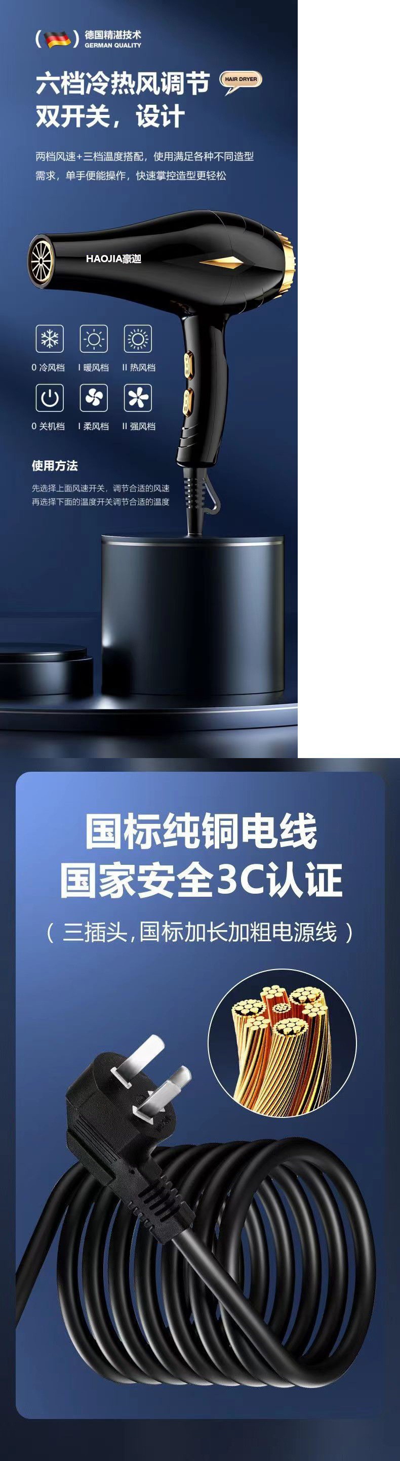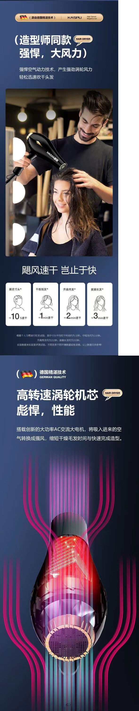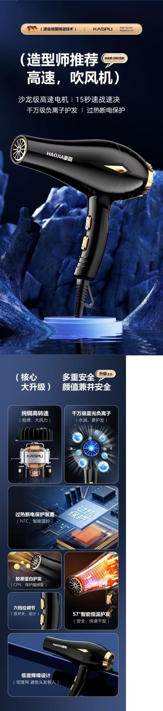 [과열 및 전원 차단 보호] Leffercae 헤어 드라이어 홈 이발소 고출력 네거티브 이온 기숙사 헤어 드라이어