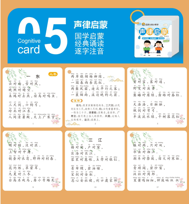 소리와 법 깨달음과 Li Weng의 Rhyme Enlightenment Card 초등학생 고전 중국 연구 계몽주의 카드 스윕 코드 듣기 및 읽기스토어 가기
