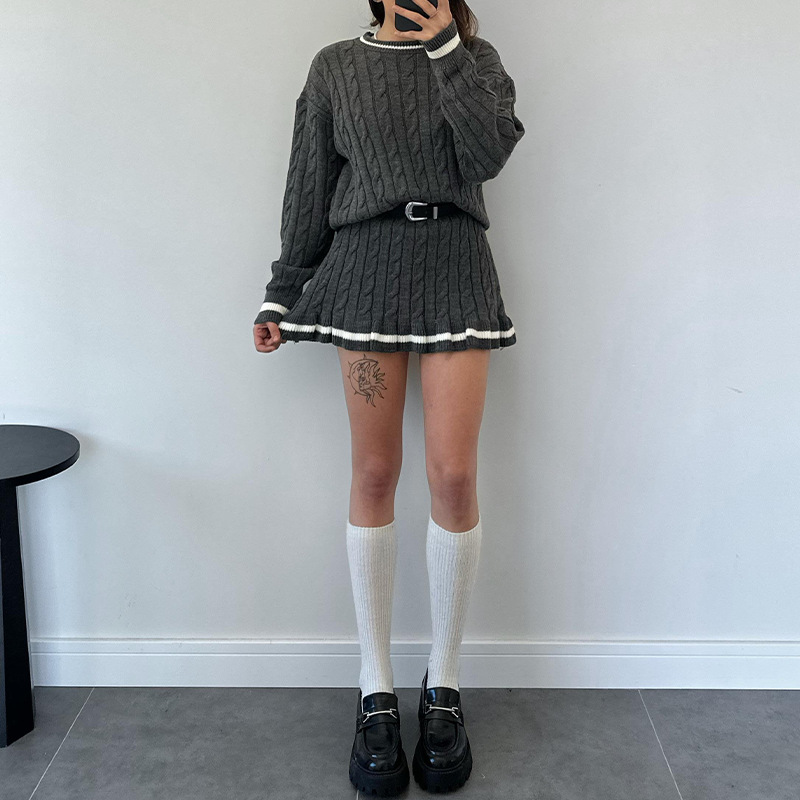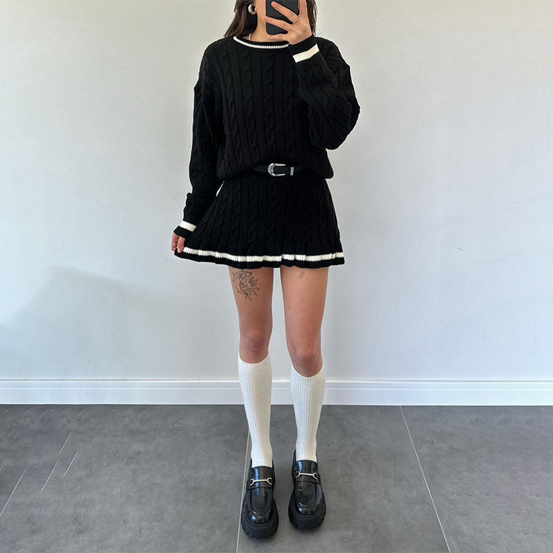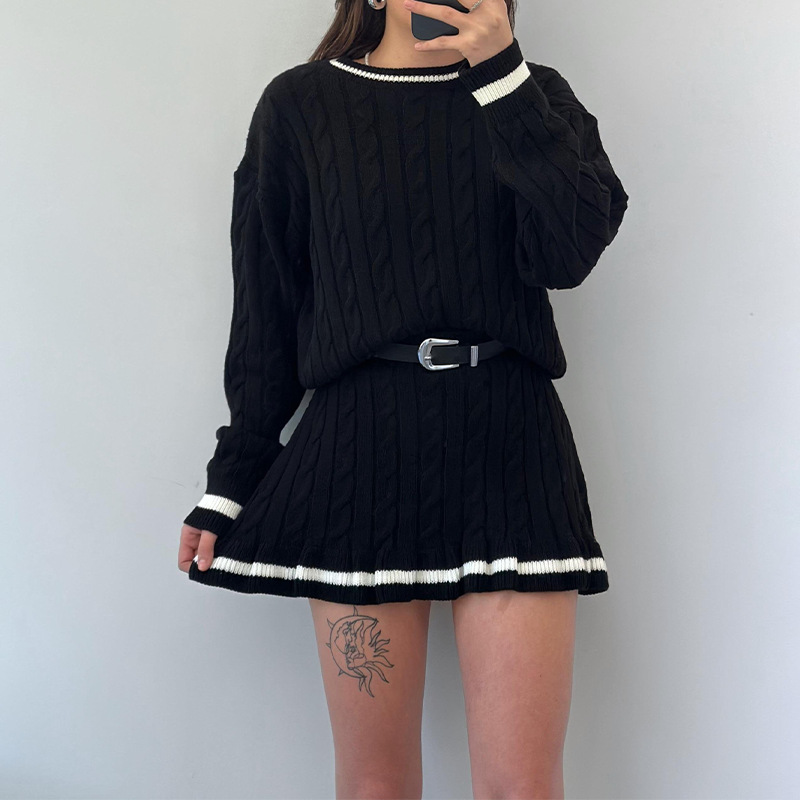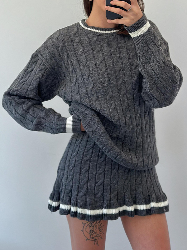 2024 유럽과 미국 아마존 국경 간 대외 무역 여성의 새로운 트위스트 니트 슬림 풀오버 편안한 명암 원피스스토어 가기