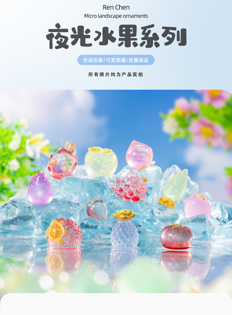 틱톡 라이브 방송용 시뮬레이션 반짝이 과일 장식품 미니어처 귀여운 창의적인 야광 레진 식품 장난감 데스크탑 장식품