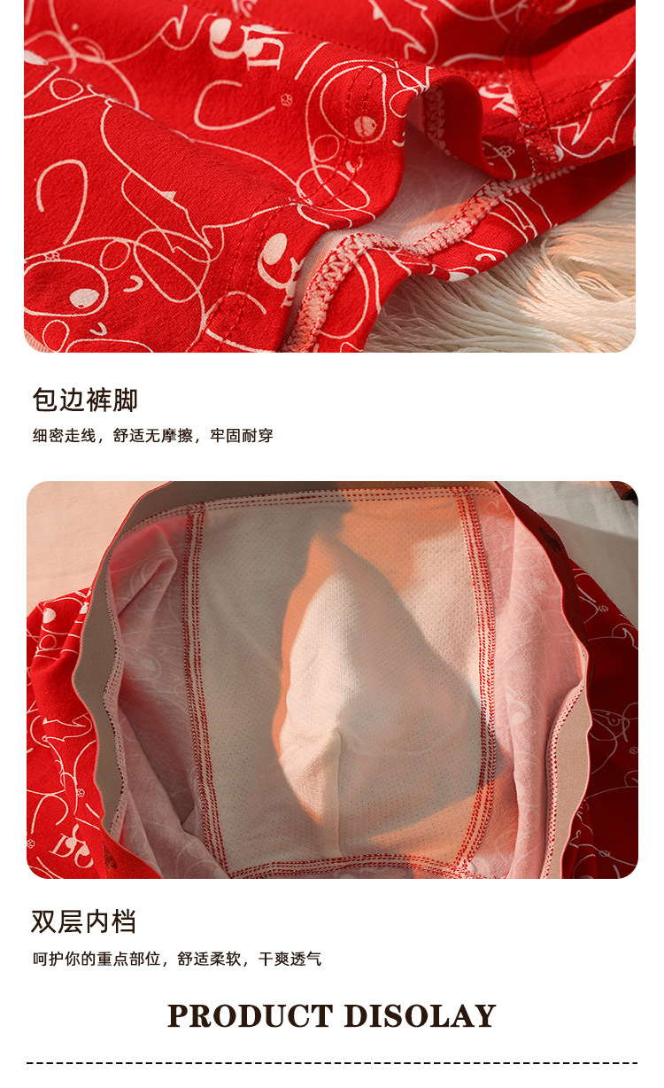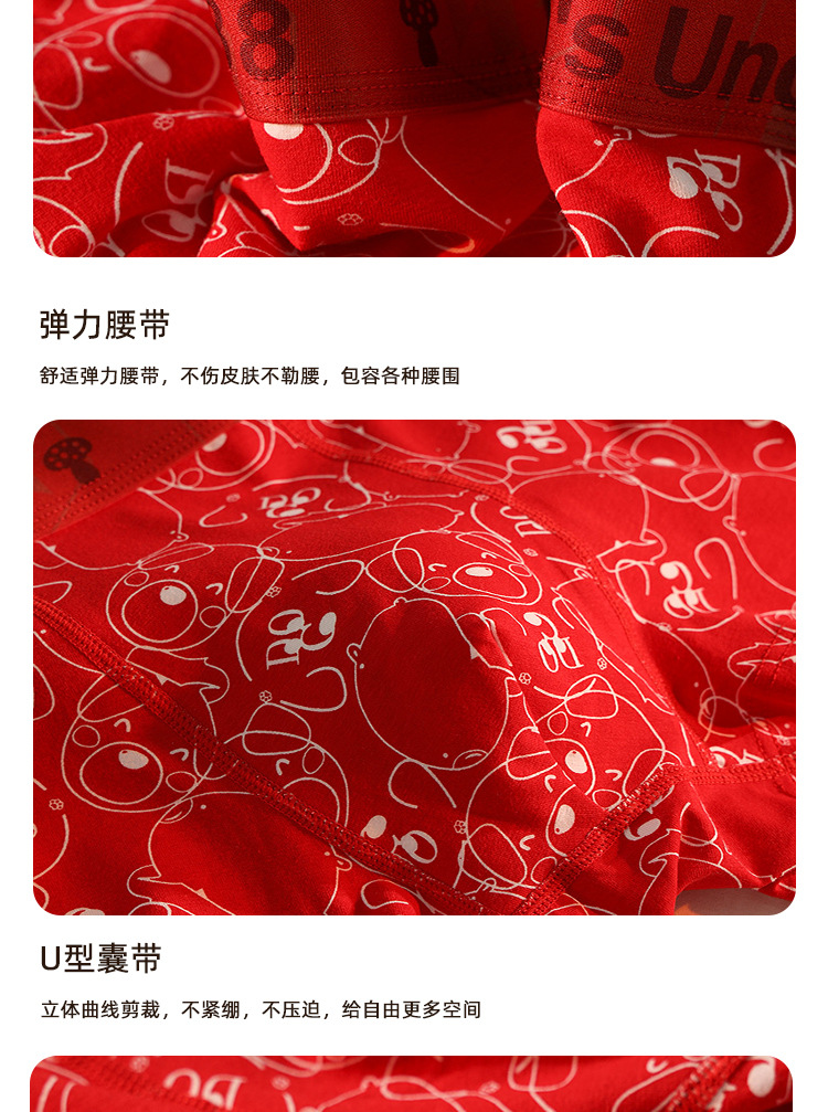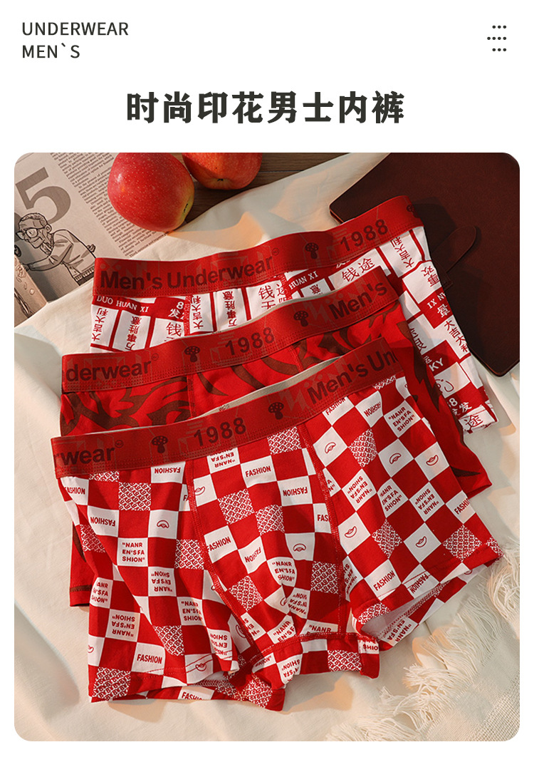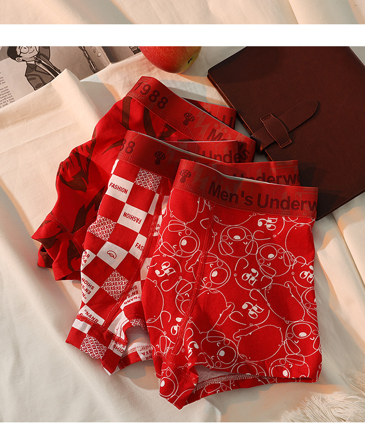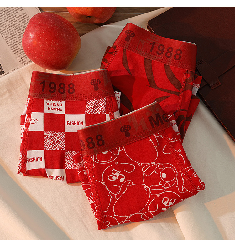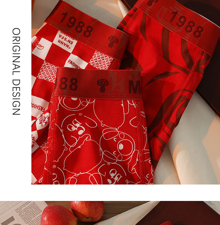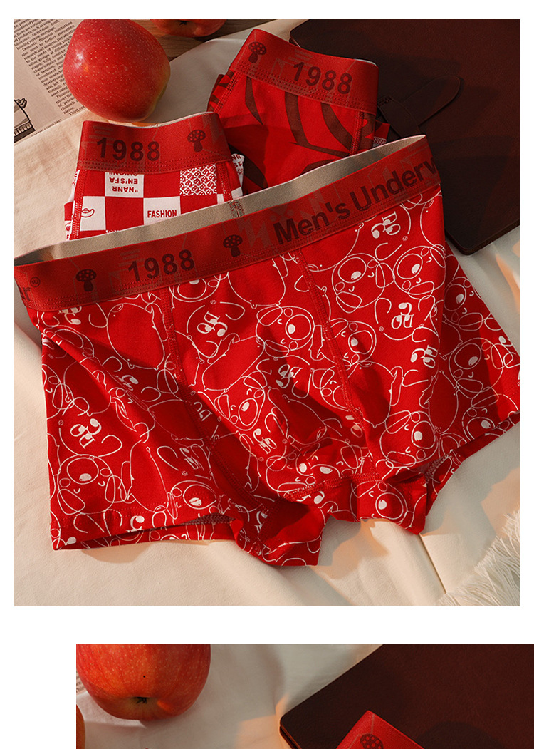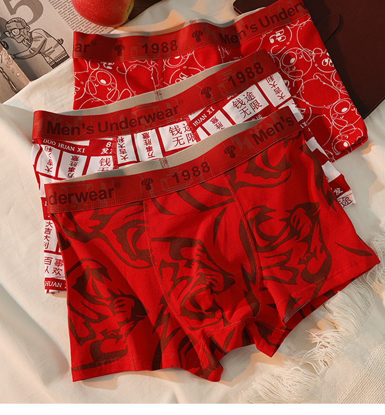 남성용 속옷 남성용 퓨어 코튼 브닝 니안 레드 트렌디 바지 편안한 통기성 박스 홍윤 웨딩 박스
