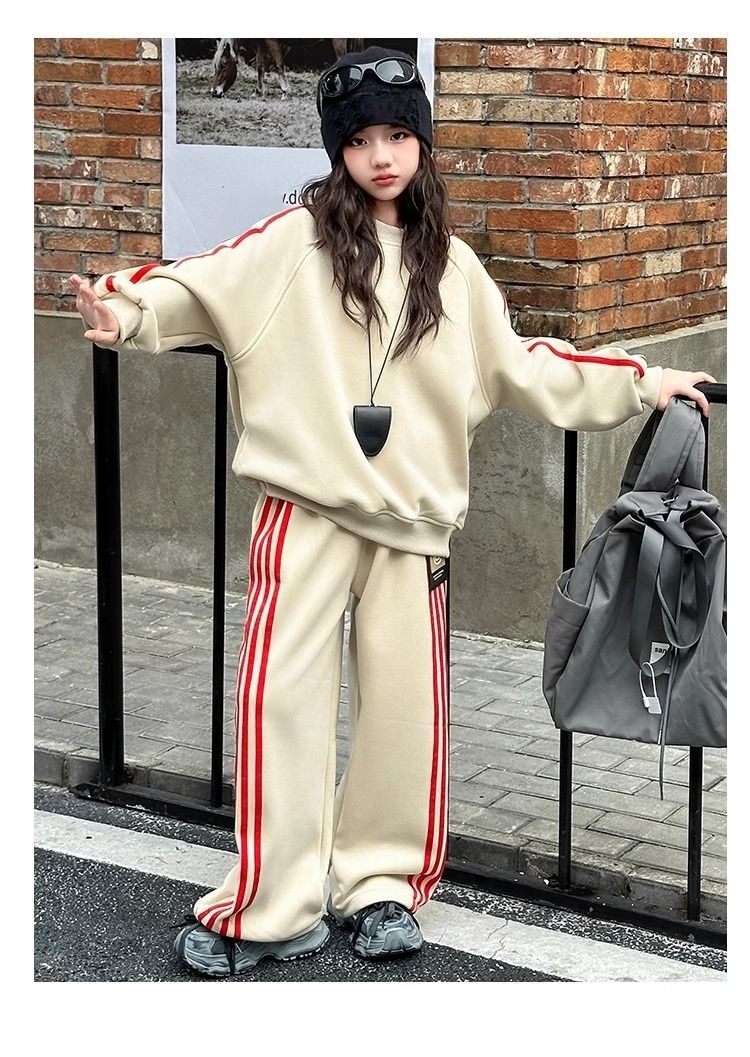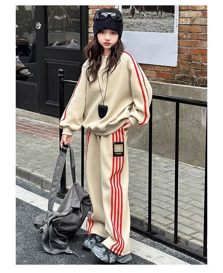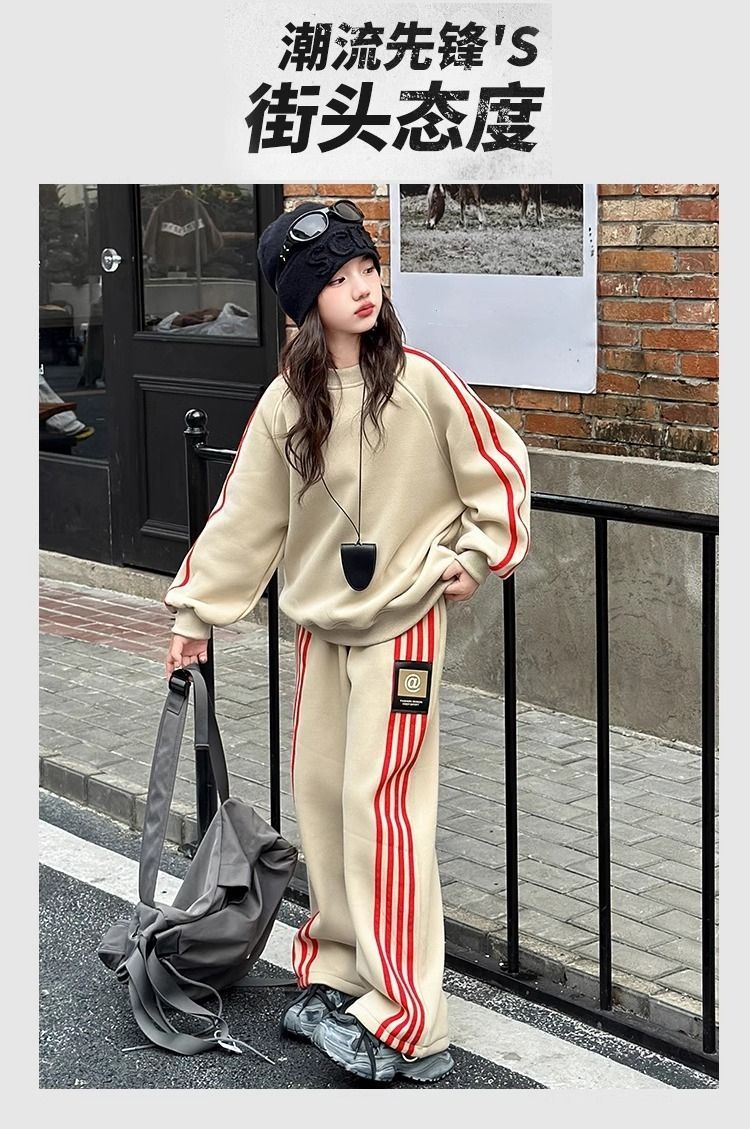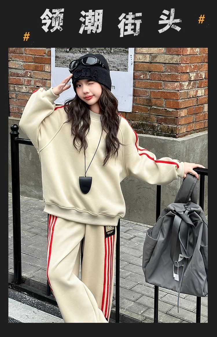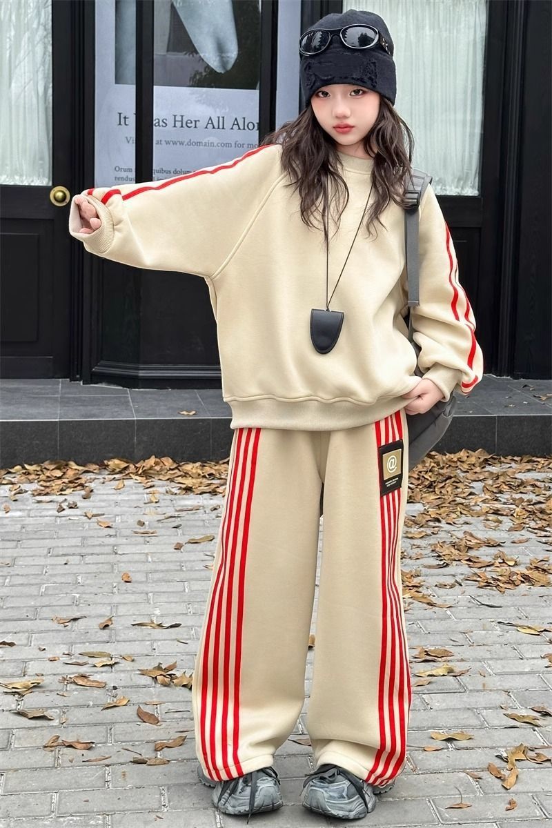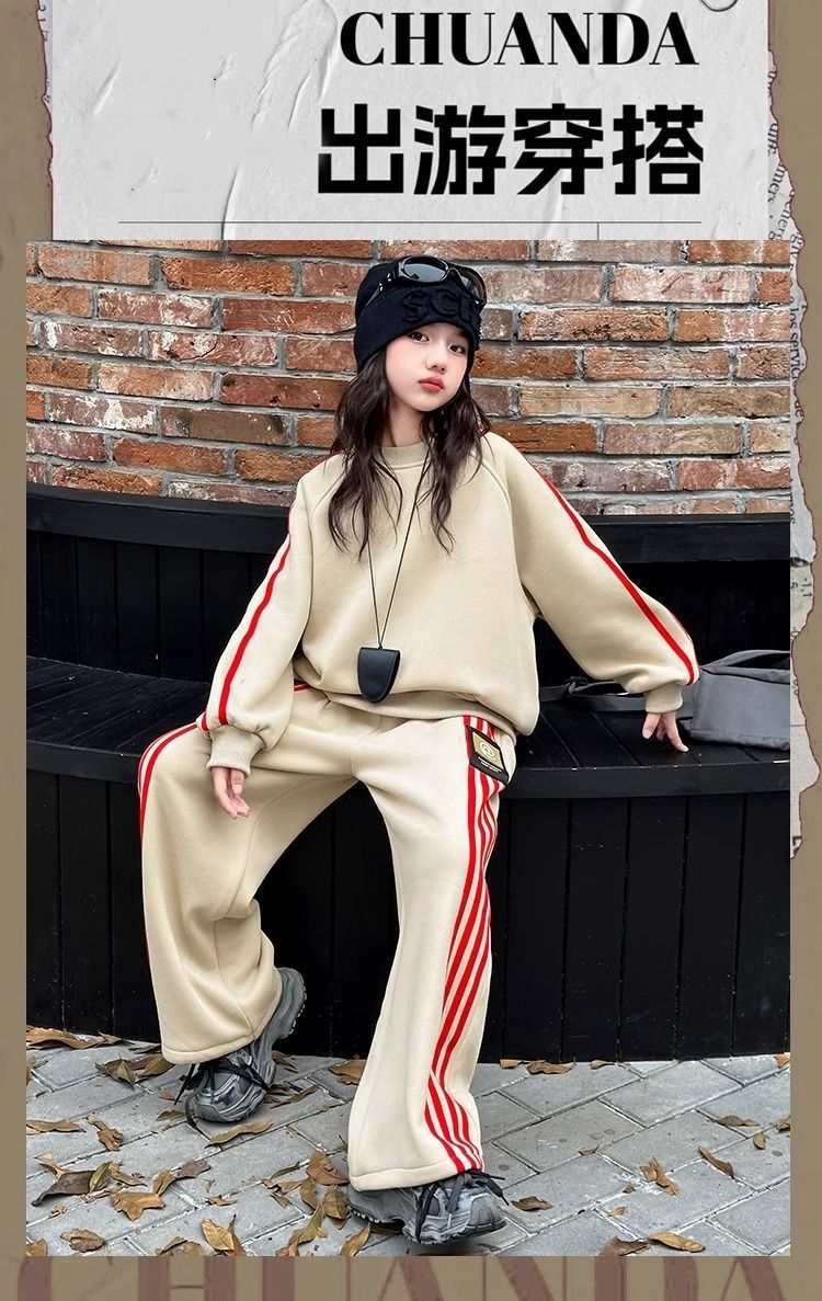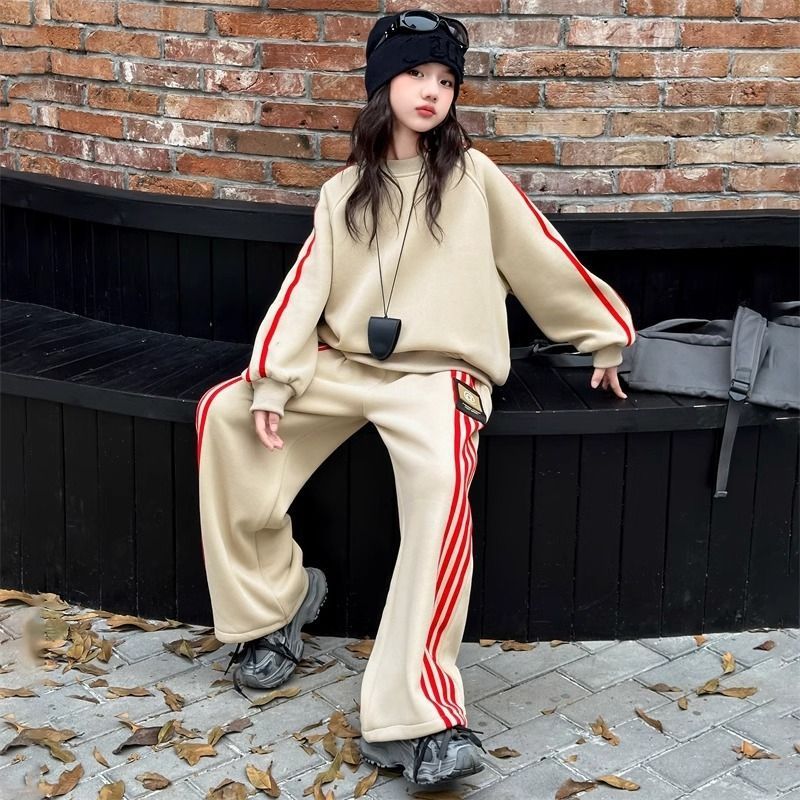 여아 스포츠복 세트, 기모 및 두꺼운 소재, 2025년 가을 겨울 신상, 아동용 스웨트셔츠 투피스 세트, 중대형 아동용, 세련되고 트렌디함스토어 가기