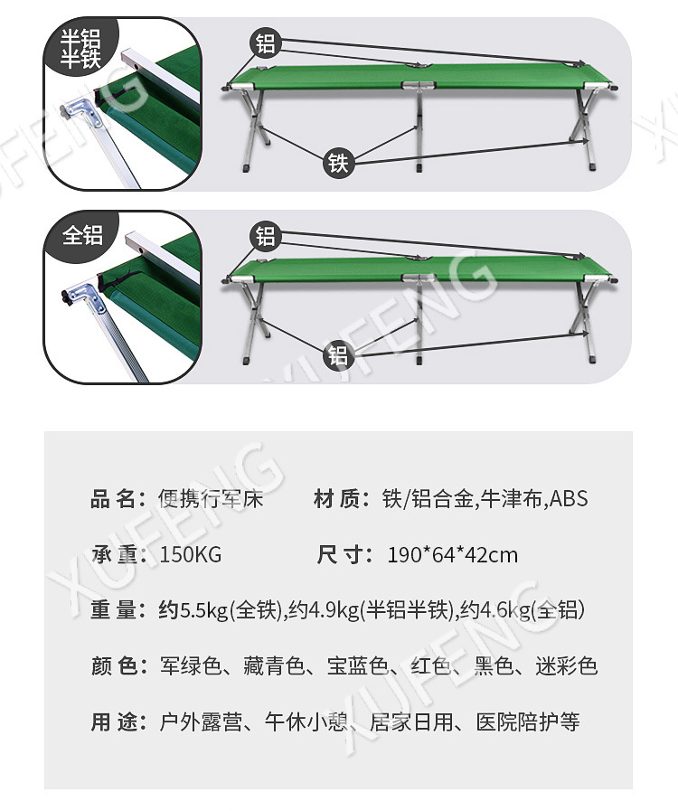 알루미늄 합금 단일 사람 캠핑 낚시 전술 캠프 침대 야영 시민 구호 확대 야외 접이식 침대 캠프 침대