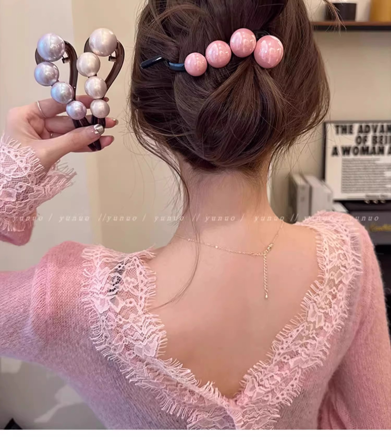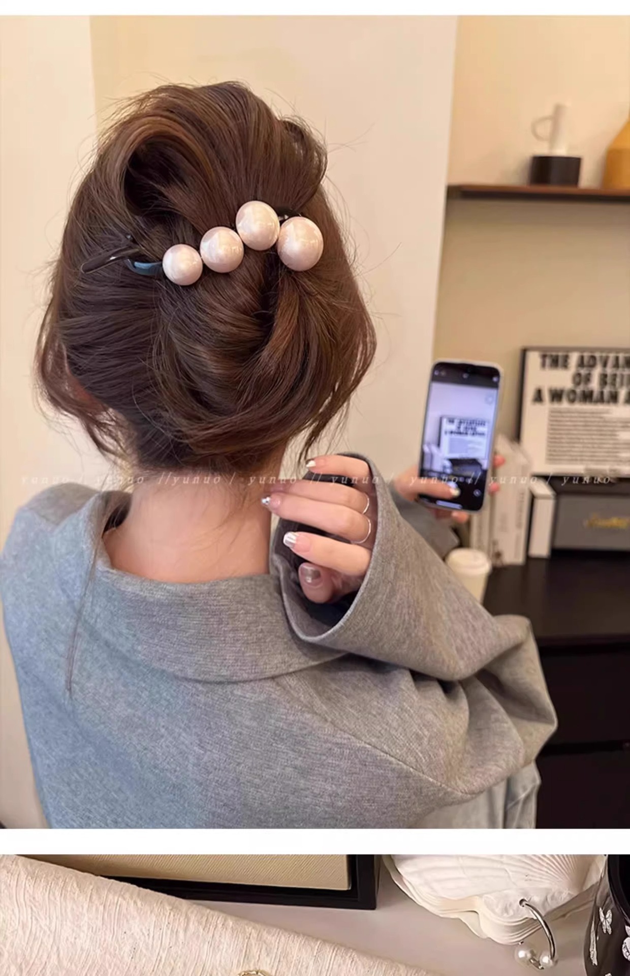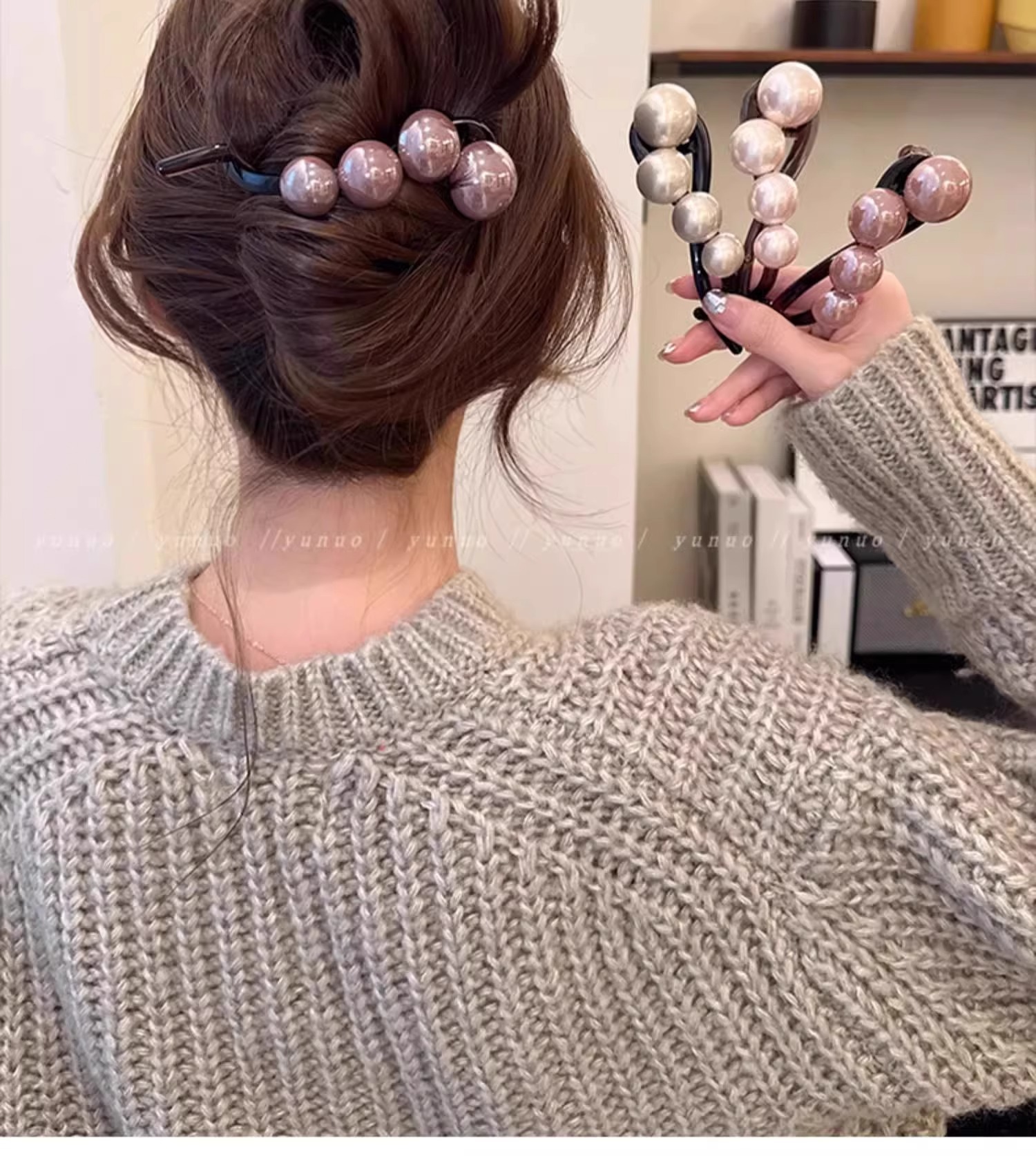 간단한 우아한 진주 헤어 클립 여성의 2024 새로운 머리 뒤 트위스트 클립 고급 그랩 클립 헤드웨어스토어 가기
