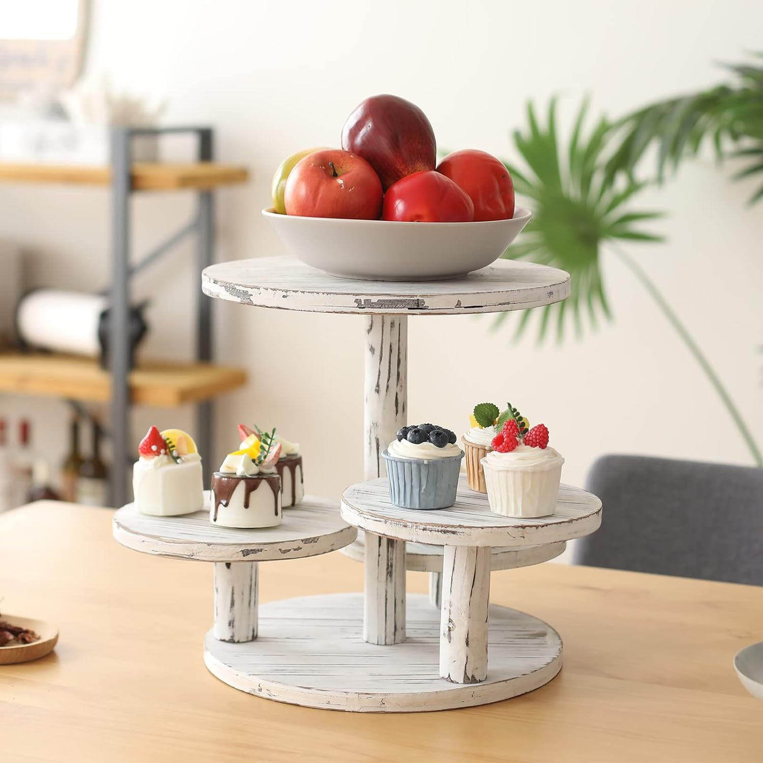 나무 저장 랙 거실 커피 테이블 과일 트레이 멀티 레이어 케이크 랙 파티 다이닝 테이블 케이크 타워 장식 솔리드 우드 디스펠 랙스토어 가기