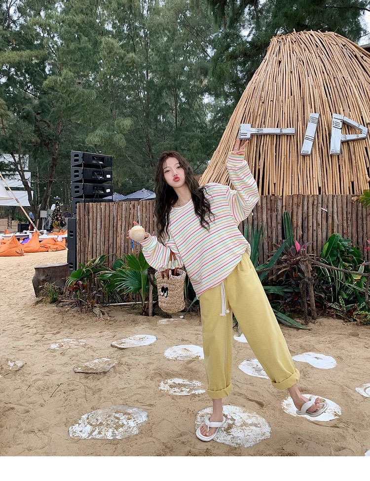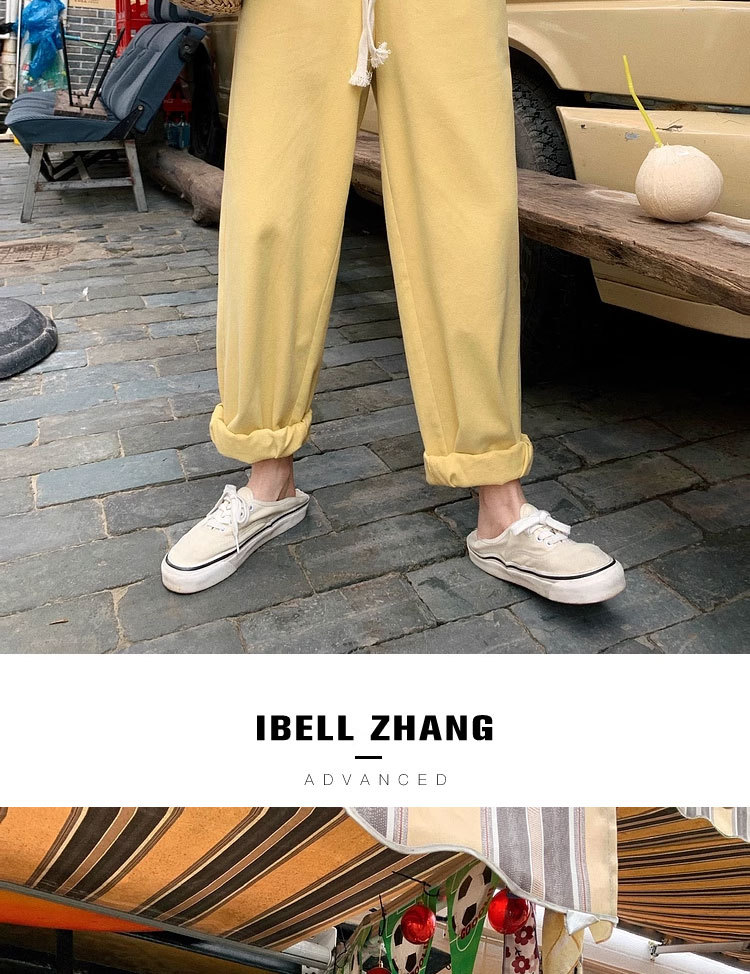 [깨진 크기 정리 처리] 하이 퀄리티 봄과 가을 느슨한 게으른 할렌 바지 조커 바지 틈새 디자인 감각