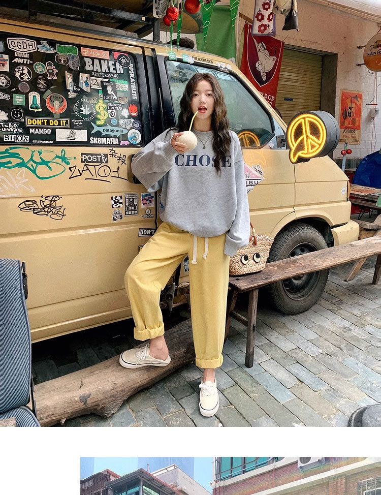 [깨진 크기 정리 처리] 하이 퀄리티 봄과 가을 느슨한 게으른 할렌 바지 조커 바지 틈새 디자인 감각스토어 가기