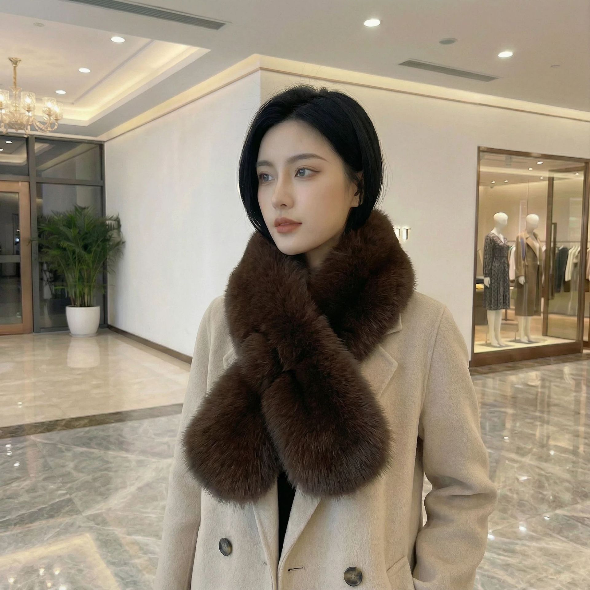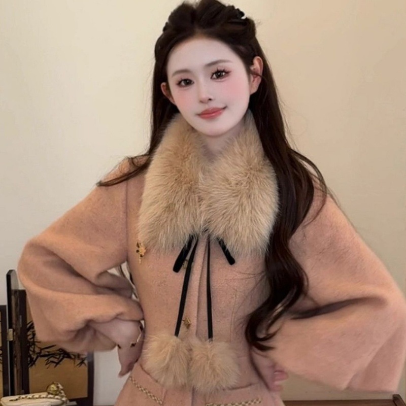• 밀크티 컬러 여우 + 렉스 토끼털 80cm 크로스 스타일