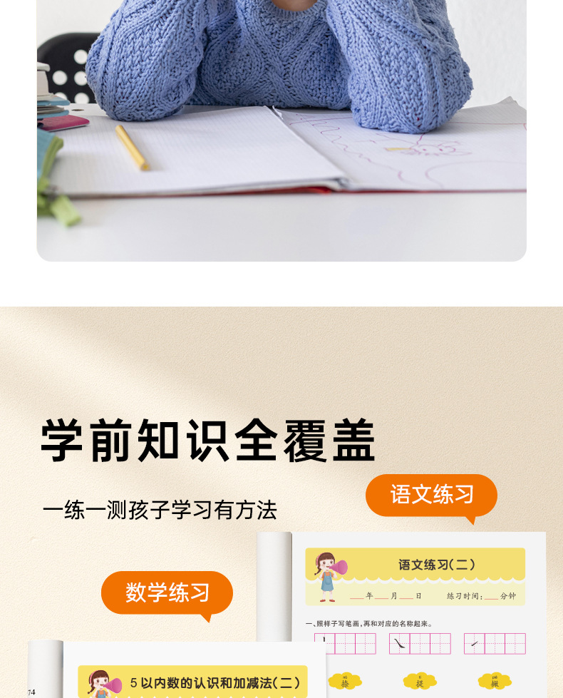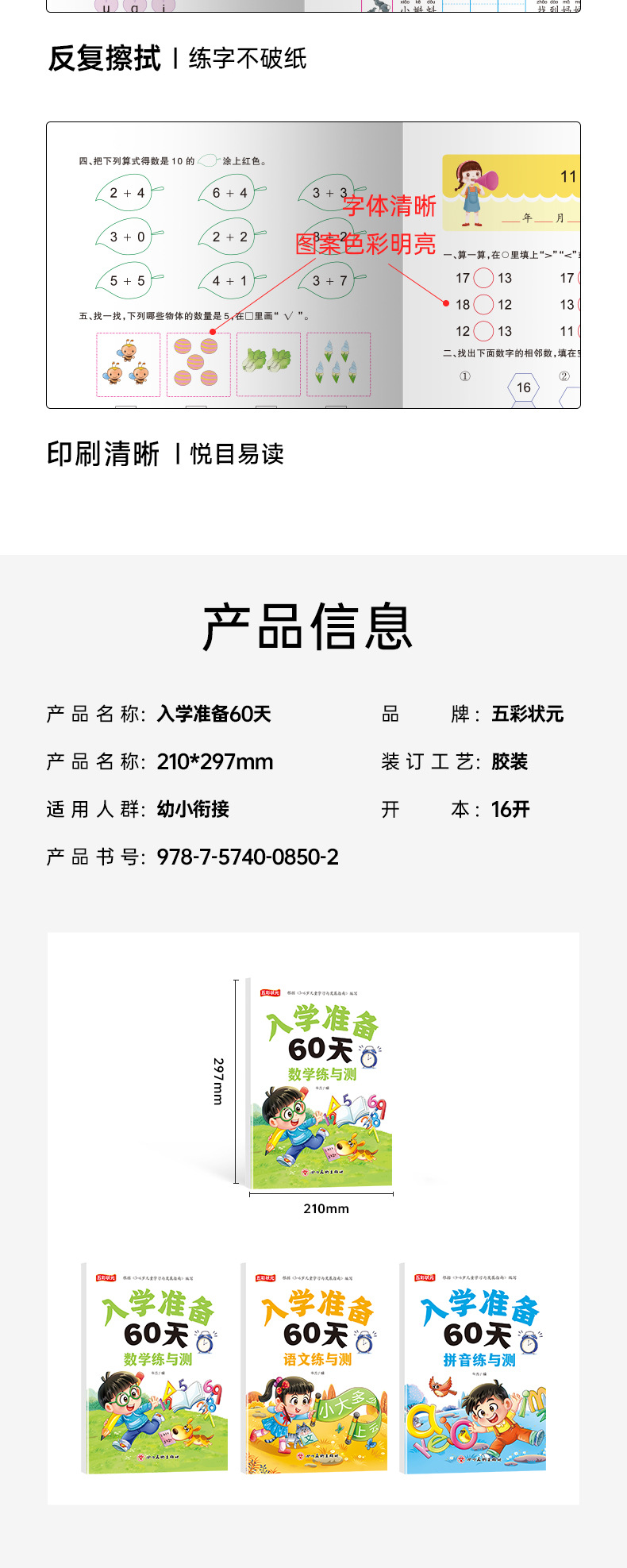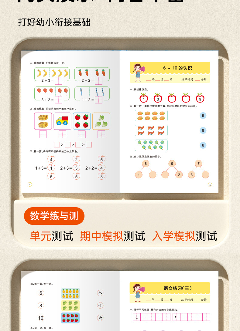 유치원 연결 수업을위한 60 일 중국어 수학 병음 시험 및 실습 종합 운동권스토어 가기