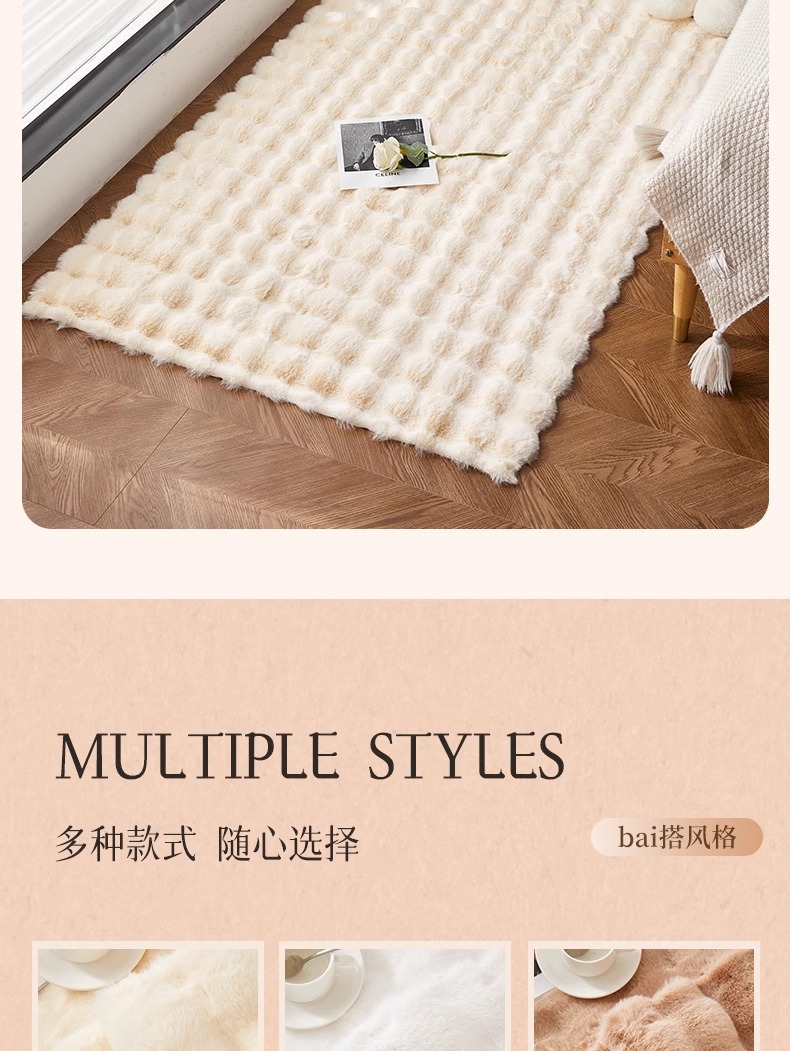 크림 스타일 토끼 봉제 카펫 침실 침실 침대 옆 카펫 망토 거실 베이 창 소파 카펫 바닥 매트 카펫스토어 가기