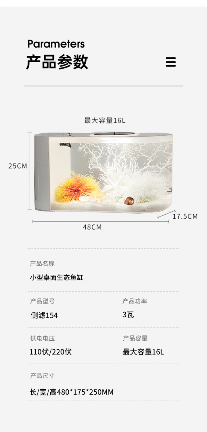 Yut 물이없는 음소거 사이드 필터 자체 순환 게으른 어항 작은 거실 데스크탑 가정용 측면 필터 어항 금붕어스토어 가기