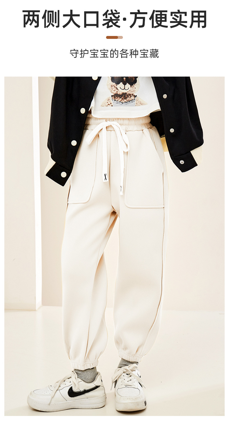 어린이 기모 스웨트 팬츠 가을과 겨울 소녀 캐주얼 드로스트링 스포츠 바지 소년 느슨한 다리 발가락 가을 서양식 바지스토어 가기