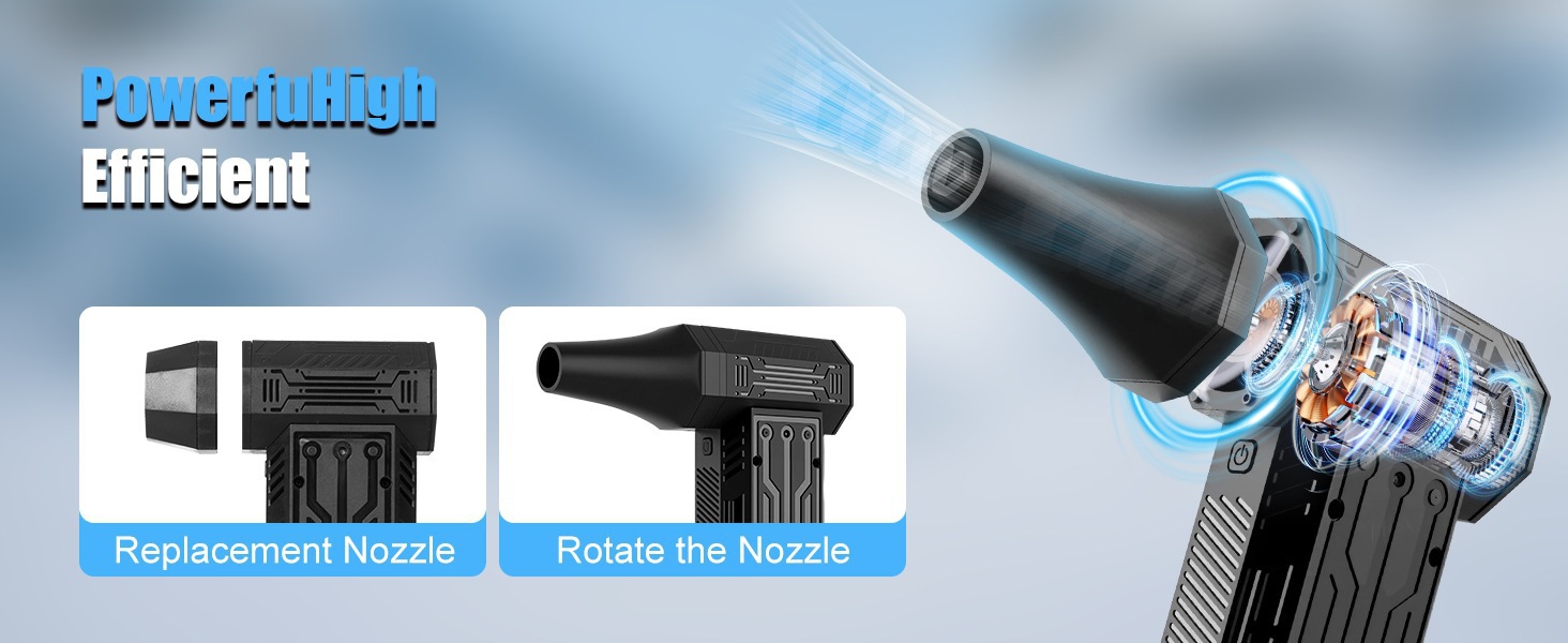 1.吹风或吸尘功能:请先安装好相应配件,按下开关在1档工作,屏幕显示20,再次按下开关切换为2档,屏幕显示40,继续按下开关切换为3档,屏幕显示60,继续按下开关切换为4档,屏幕显示80,长按3秒以上切换为最高档屏幕显示100,在最高档时,需长按开关,松开开关则停止工作。