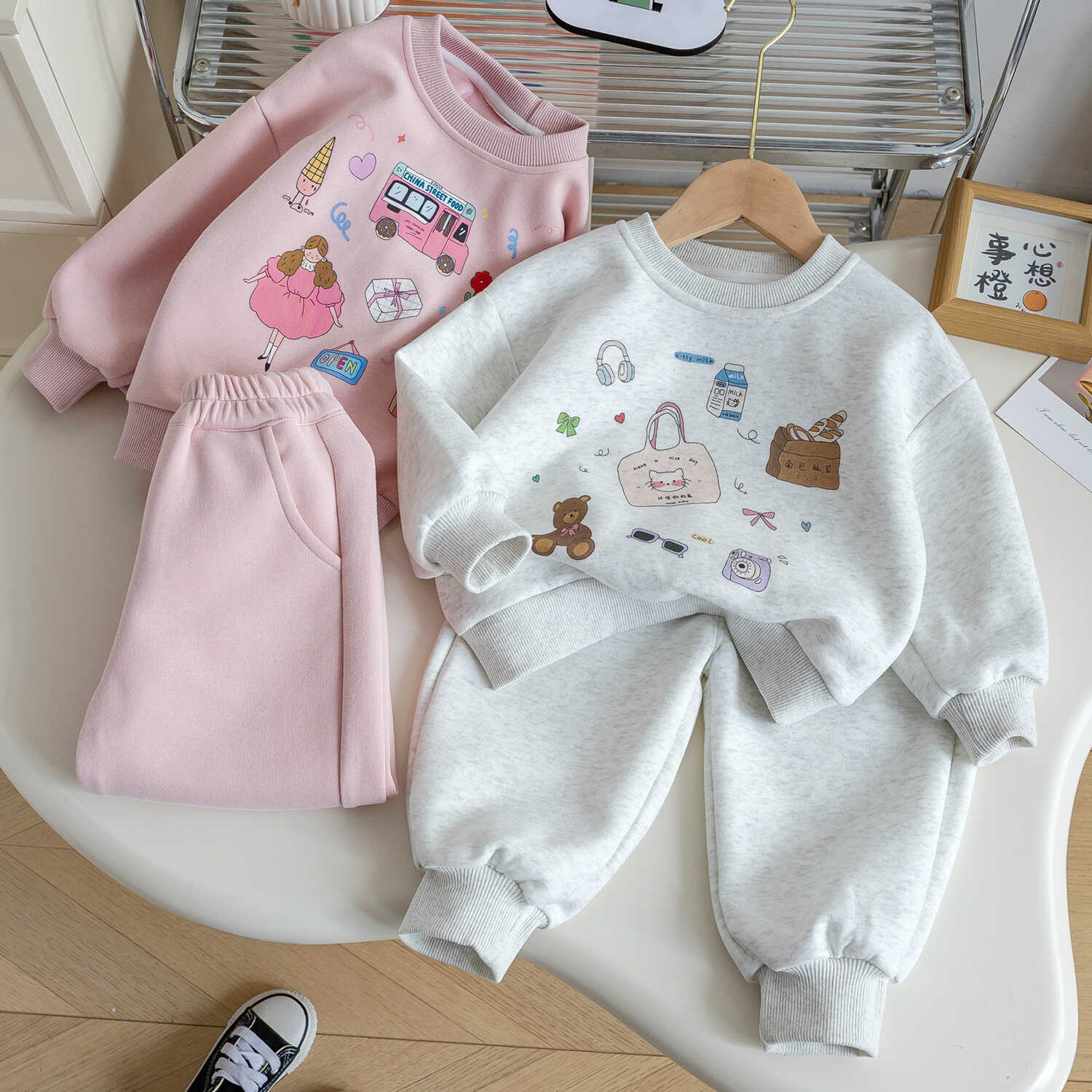 어린이 운동복 세트 봄, 가을 2025 새로운 여자 운동복 만화 어린이 유행 가을 의류 야외 투피스 세트스토어 가기