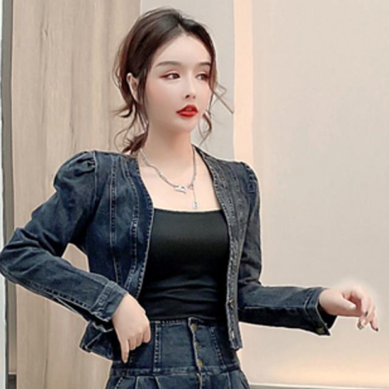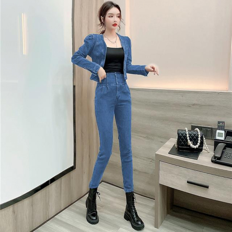 여성용 2022 가을 새로운 프랑스 패션 긴팔 재킷 최고 높은 허리 슬리밍 데님 바지 세트 트렌디스토어 가기
