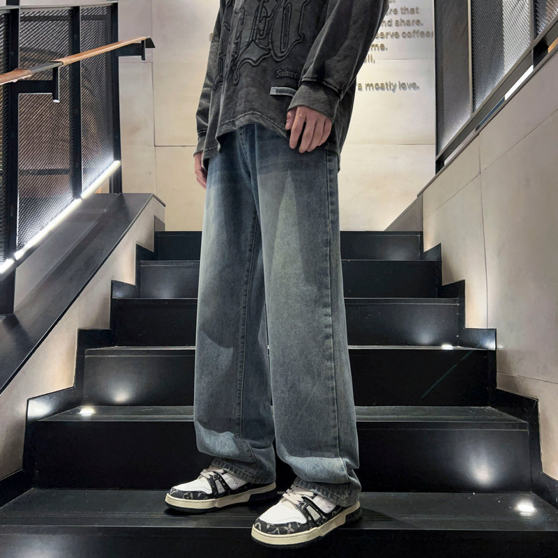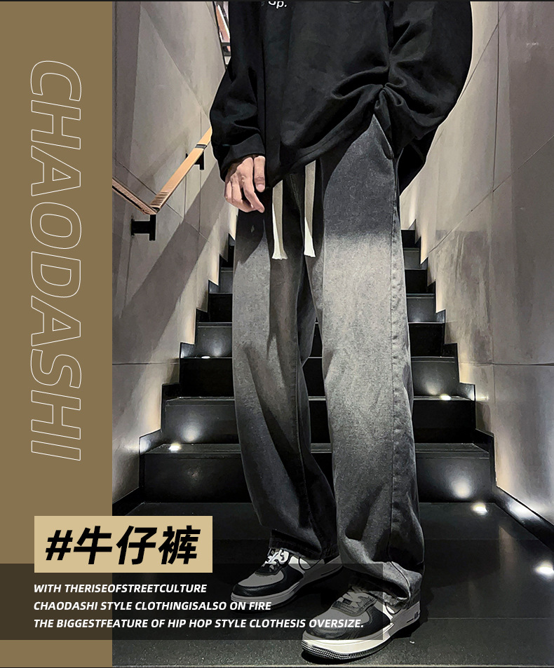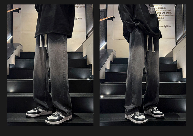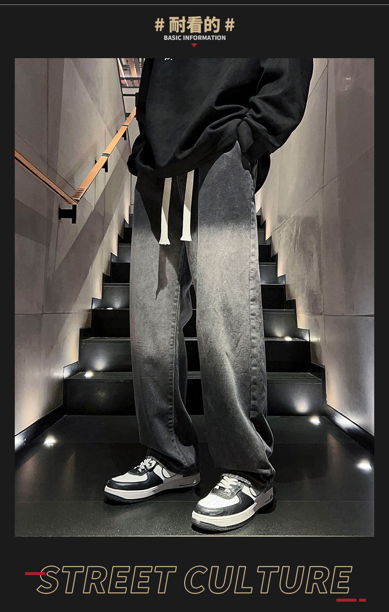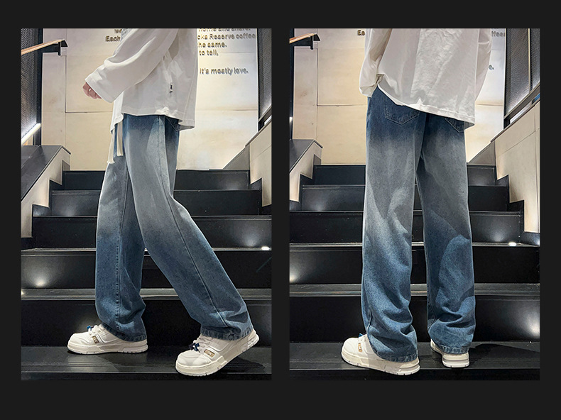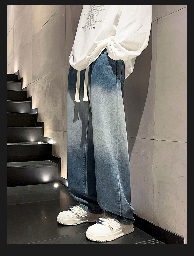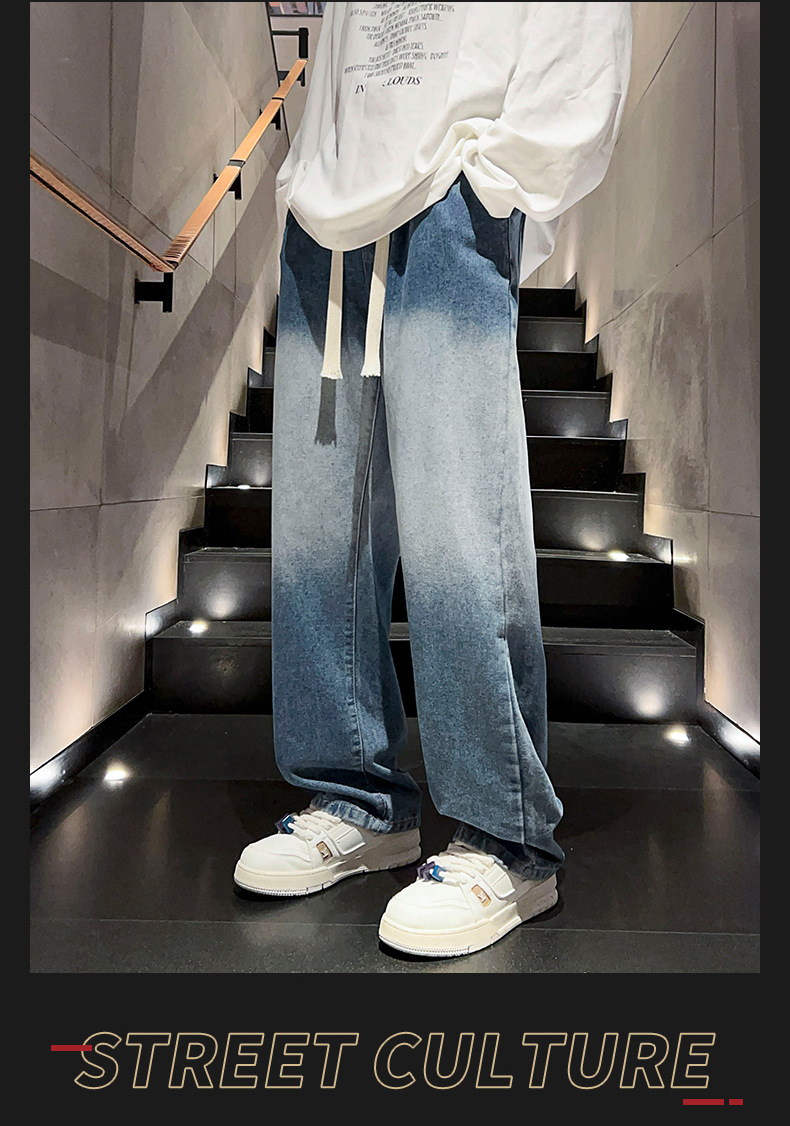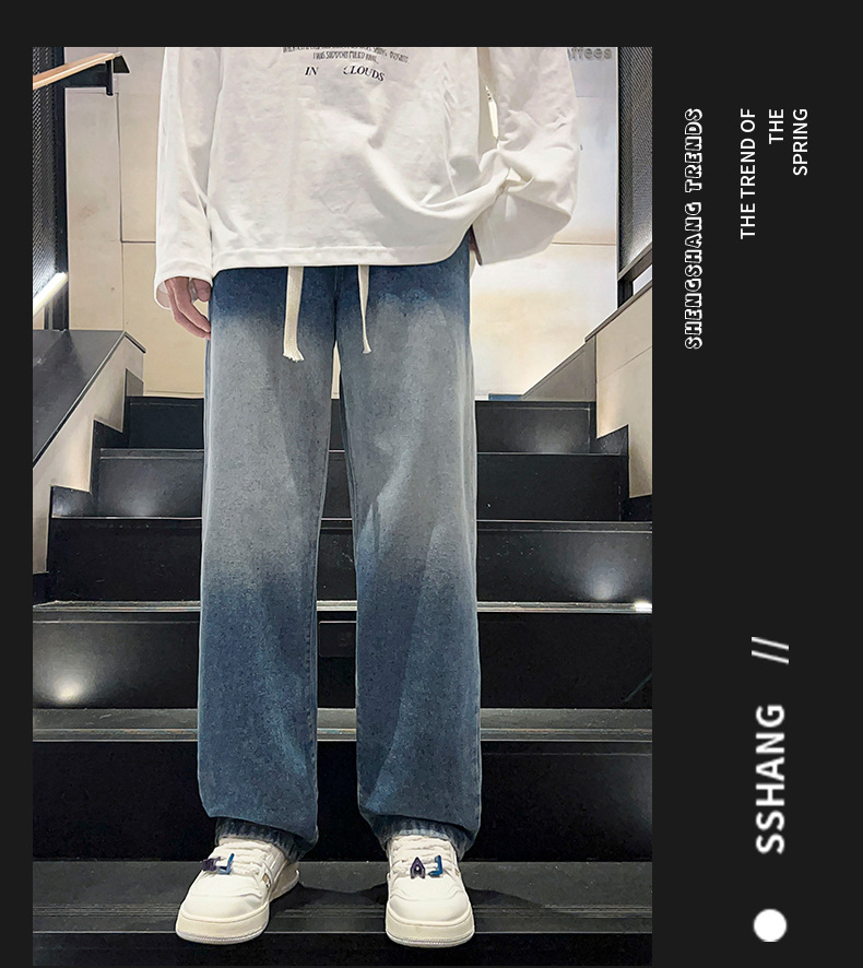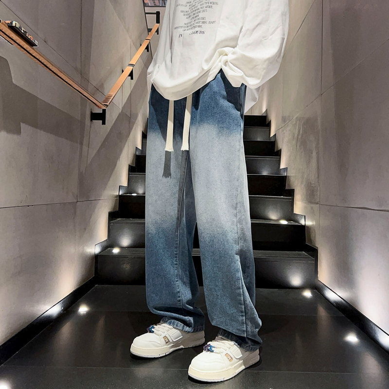미국 스타일의 트렌디 한 브랜드 그라디언트 청바지 봄과 가을 남자 2024 새로운 스트레이트 느슨한 남자 캐주얼 긴 바지