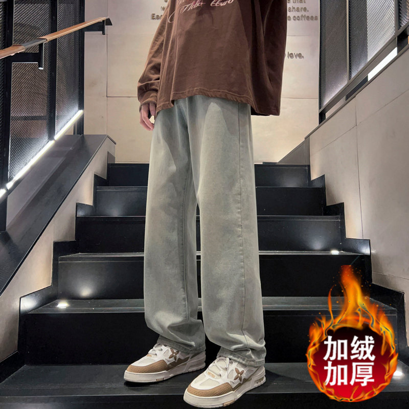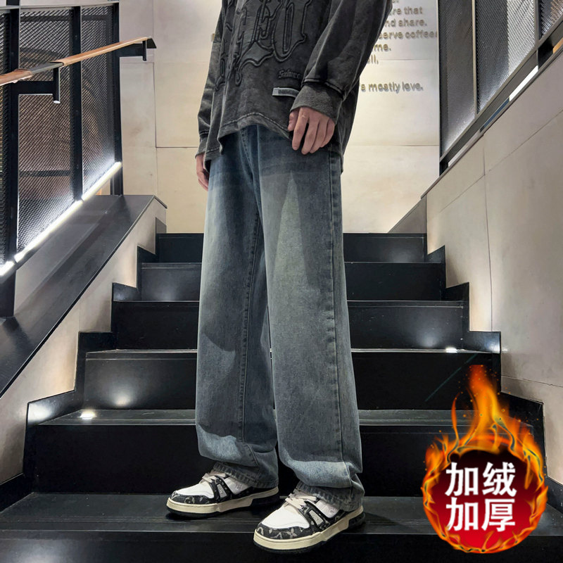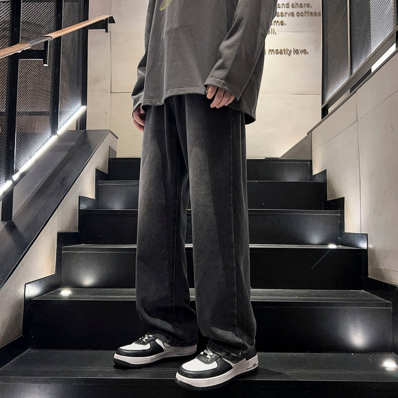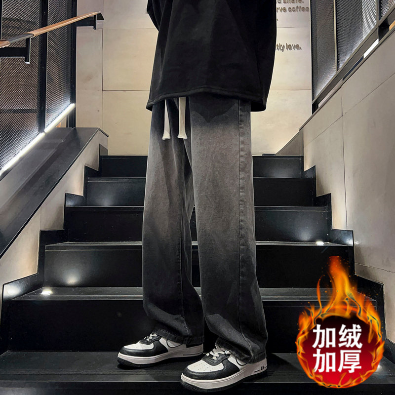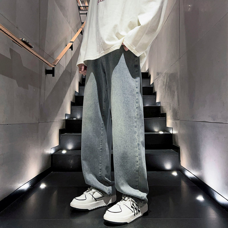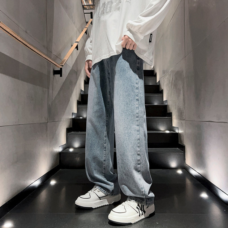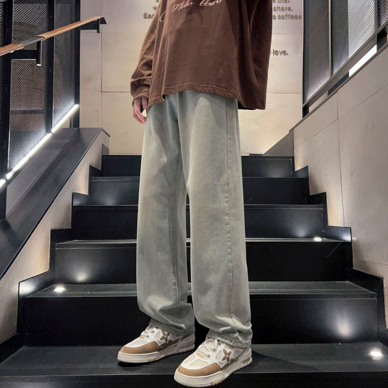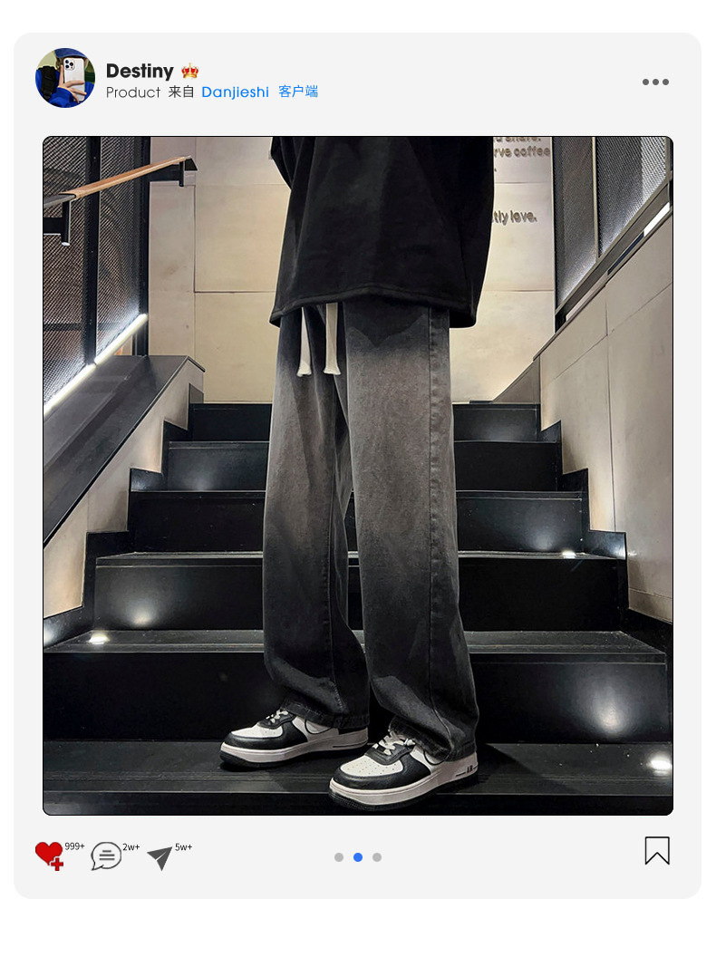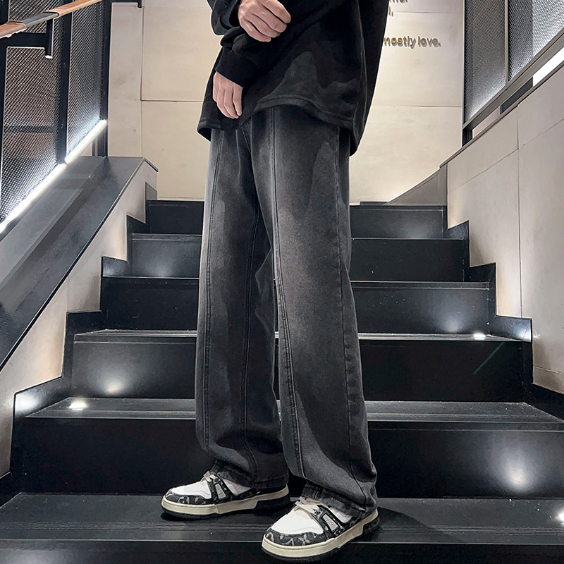 미국 스타일의 트렌디 한 브랜드 그라디언트 청바지 봄과 가을 남자 2024 새로운 스트레이트 느슨한 남자 캐주얼 긴 바지