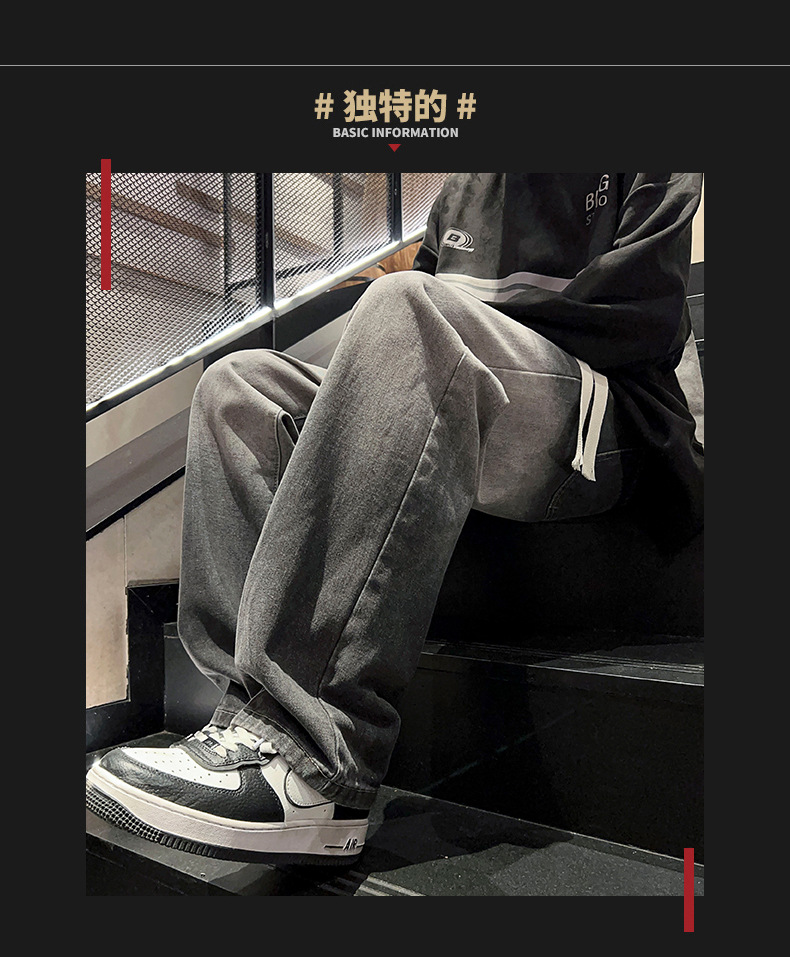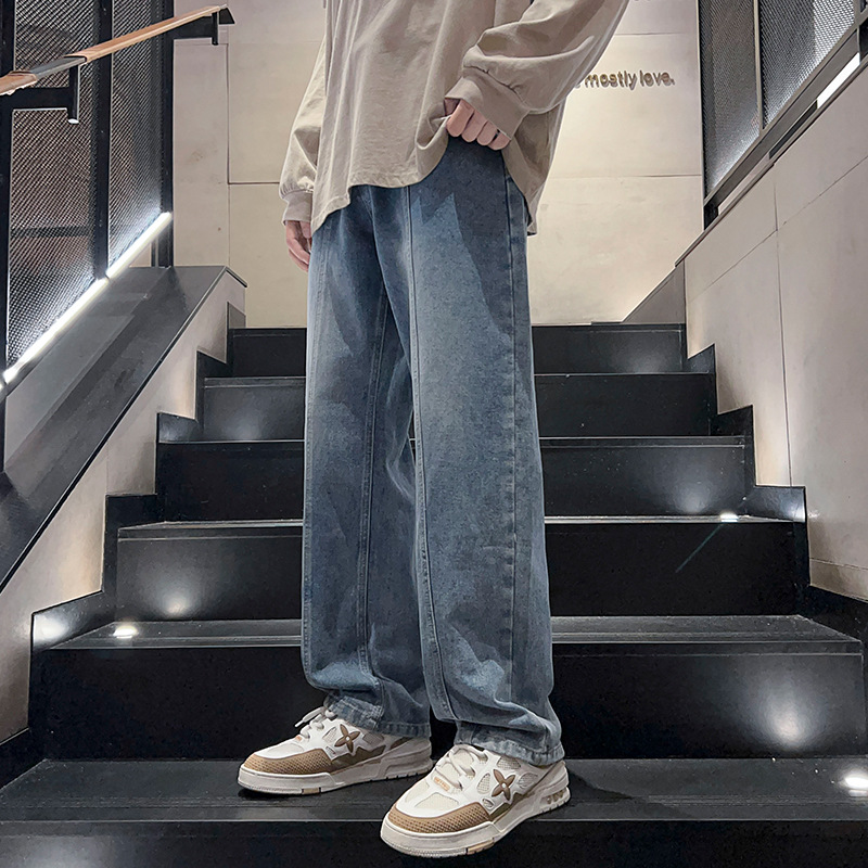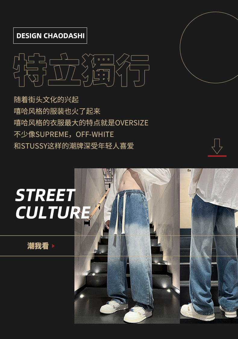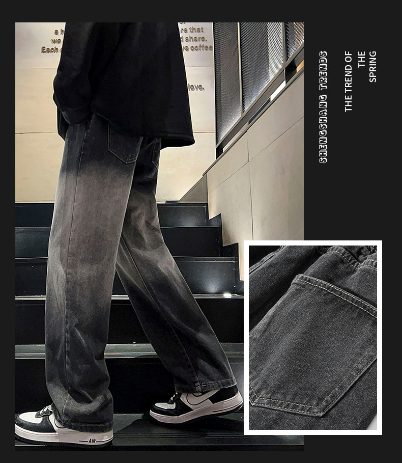 미국 스타일의 트렌디 한 브랜드 그라디언트 청바지 봄과 가을 남자 2024 새로운 스트레이트 느슨한 남자 캐주얼 긴 바지스토어 가기