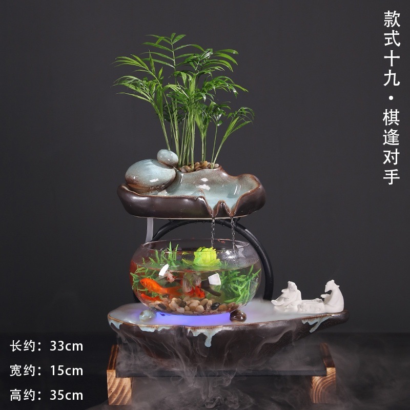 Yut 중국 스타일 흐르는 물 유리 물고기 탱크 장식품 풍수 휠 모집 분수 홈 거실 사무실 데스크탑 오프닝스토어 가기