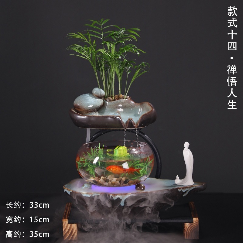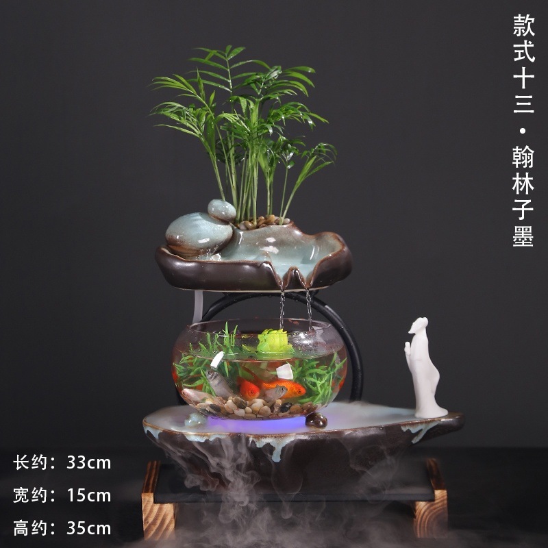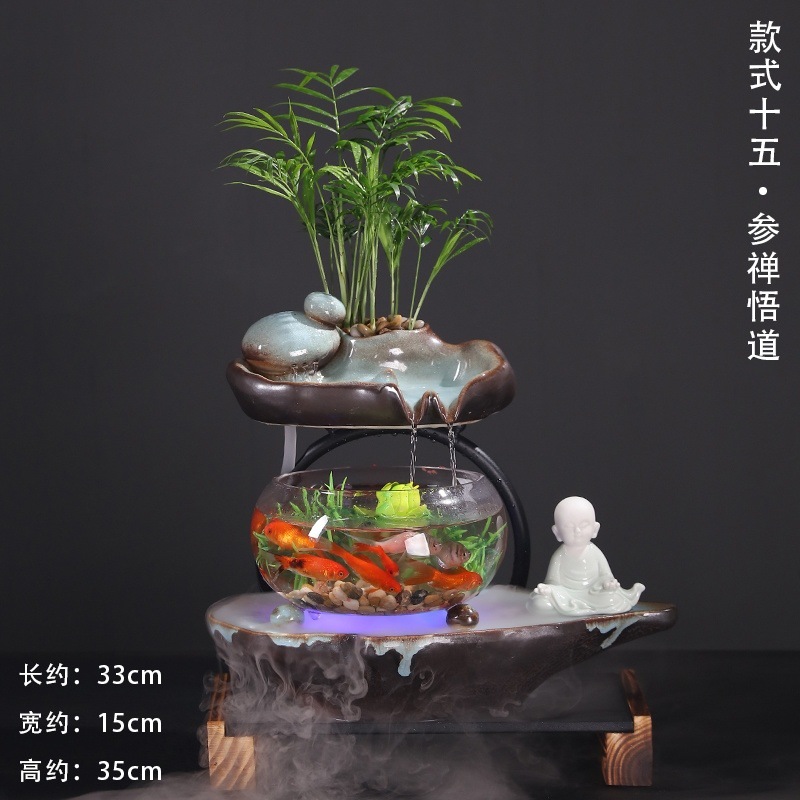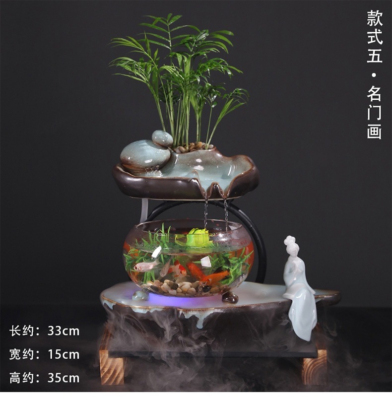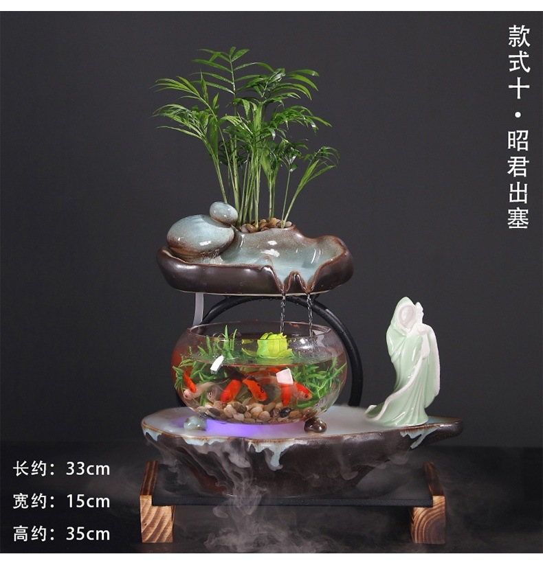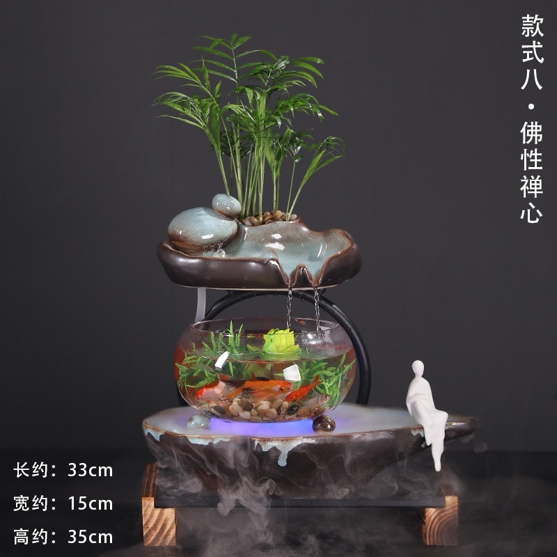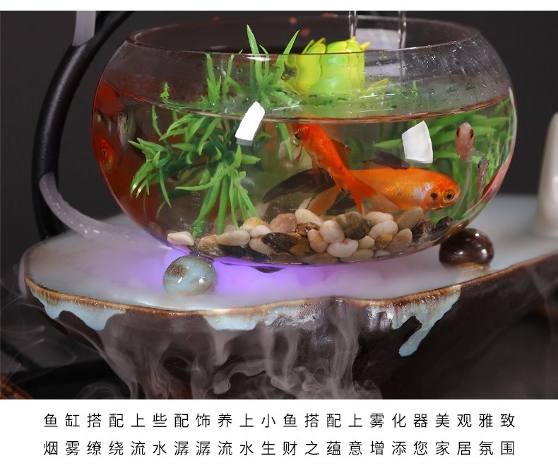 Yut 중국 스타일 흐르는 물 유리 물고기 탱크 장식품 풍수 휠 모집 분수 홈 거실 사무실 데스크탑 오프닝