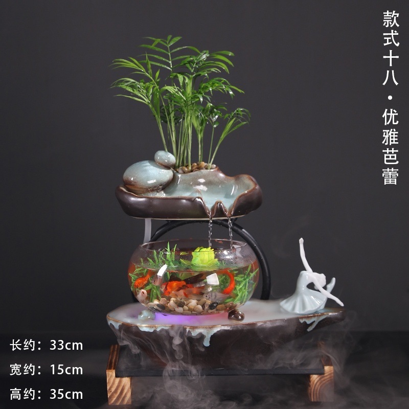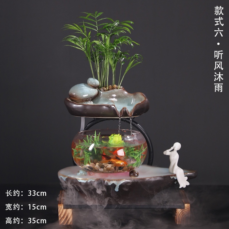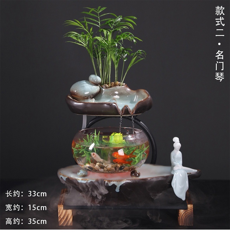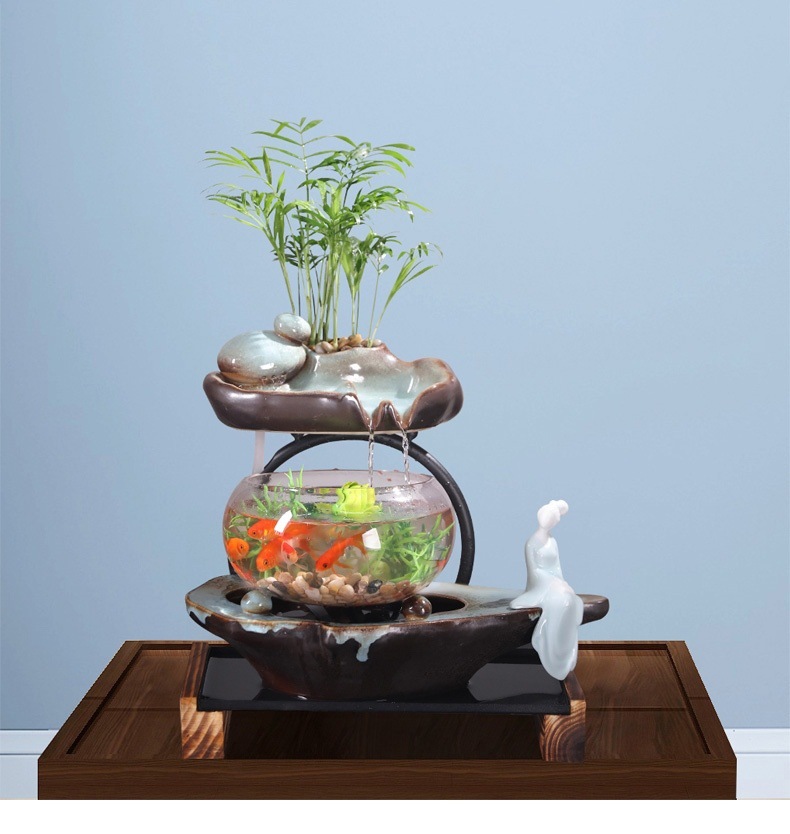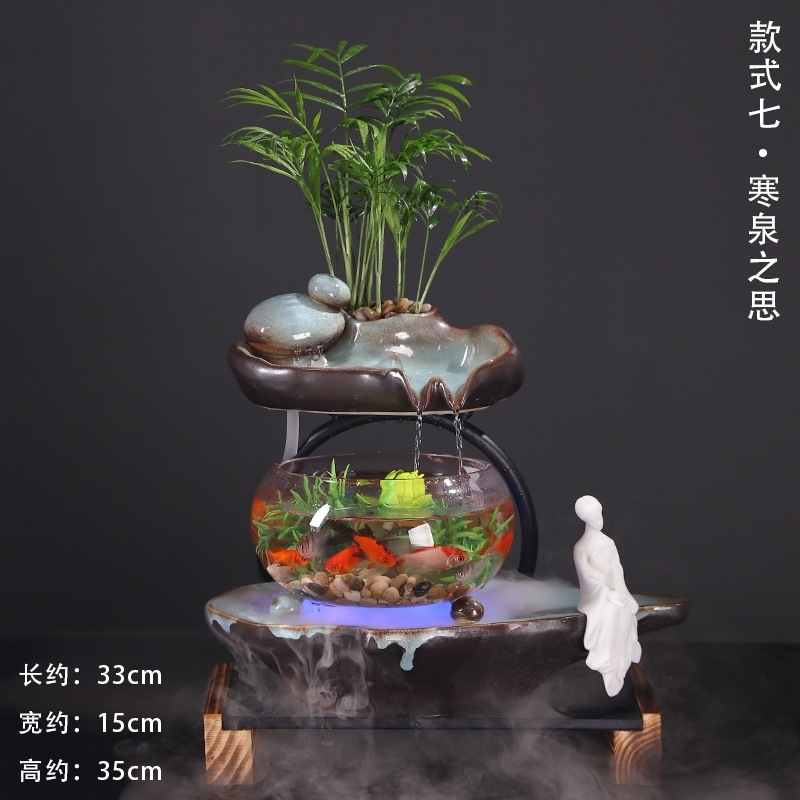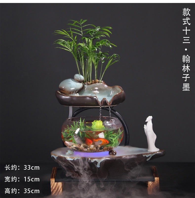Yut 중국 스타일 흐르는 물 유리 물고기 탱크 장식품 풍수 휠 모집 분수 홈 거실 사무실 데스크탑 오프닝