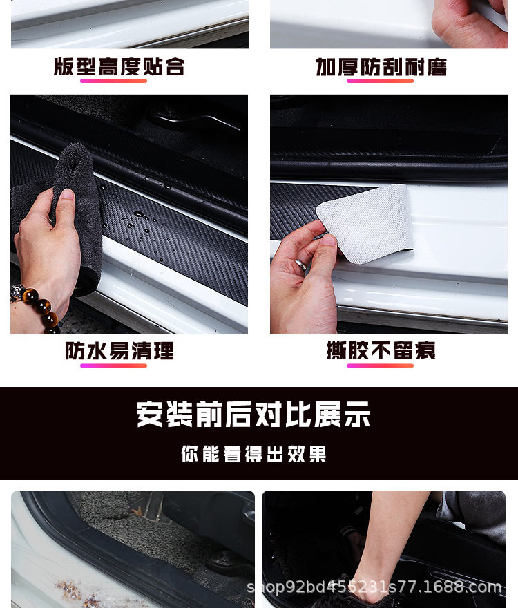 자동차 환영 페달 충돌 방지 보호 스티커 트렁크 페달 안티 스크래치 충돌 스트립 탄소 섬유 도어 실 보호 스티커