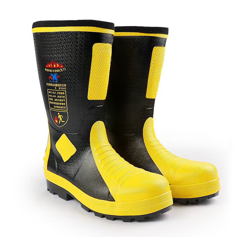 화재 신발 Yianlong 소방 부츠 3C 인증 안티 스매싱 방지 펑크 전투 신발 구조 미끄럼 방지 고무 신발
