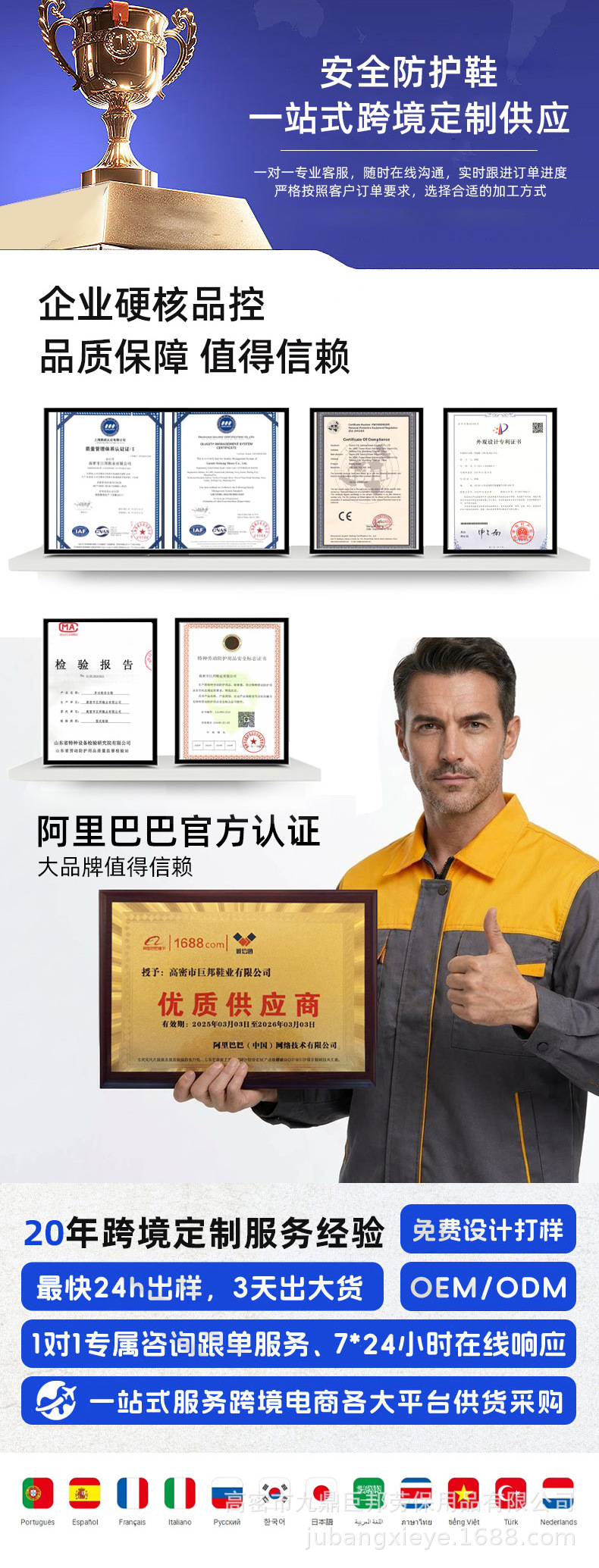 국경 간 새로운 하이탑 안티 스매싱 및 펑크 방지 노동 보호 신발 공장 직접 판매 세련된 미끄럼 방지 및 내마모성 작업 안전 신발