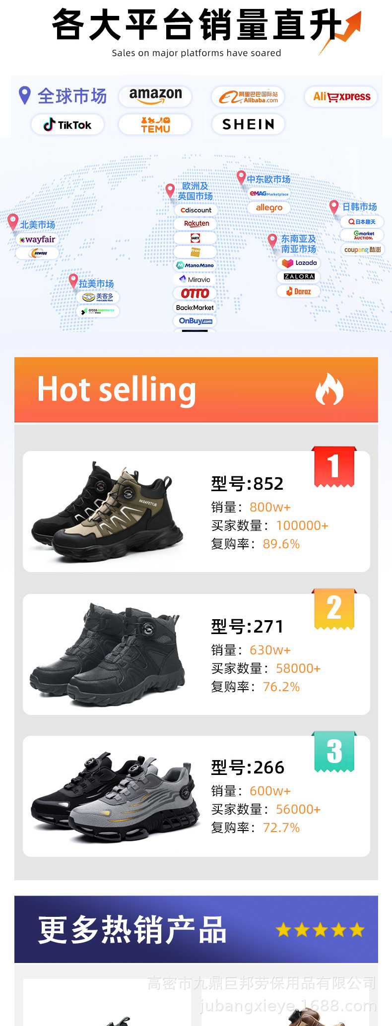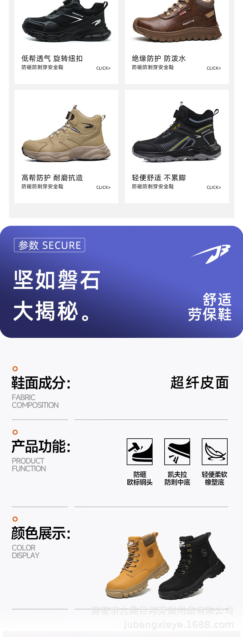 국경 간 새로운 하이탑 안티 스매싱 및 펑크 방지 노동 보호 신발 공장 직접 판매 세련된 미끄럼 방지 및 내마모성 작업 안전 신발스토어 가기
