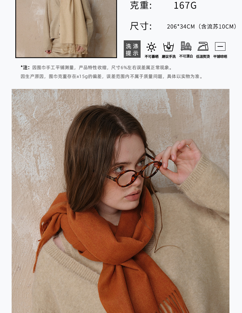 15가지 색상의 클래식 하이엔드 심플 따뜻한 솔리드 컬러 울 스카프 가을 겨울 스카프 남녀공용 선물스토어 가기
