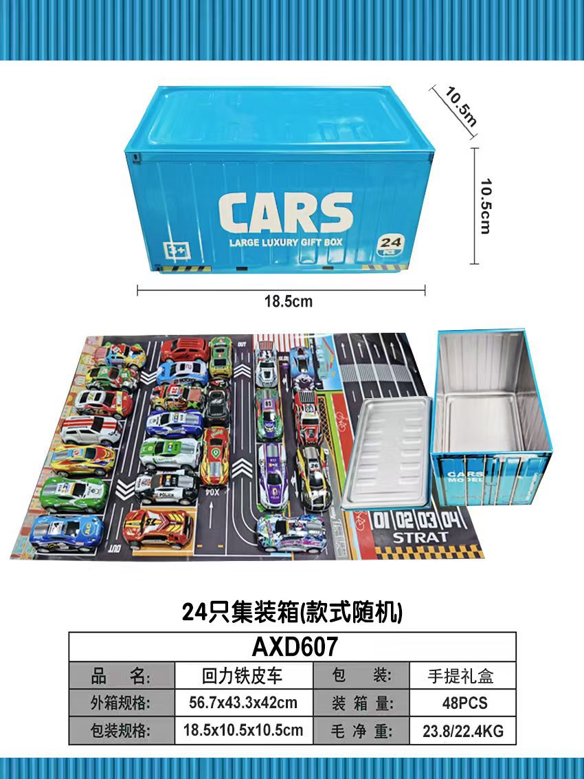 • 철제 상자에 합금 풀백 자동차 24개 [파란색]