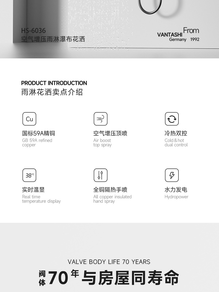 • 글로시 실버(3가지 기능) 레인 + 폭포 + 핸드헬드