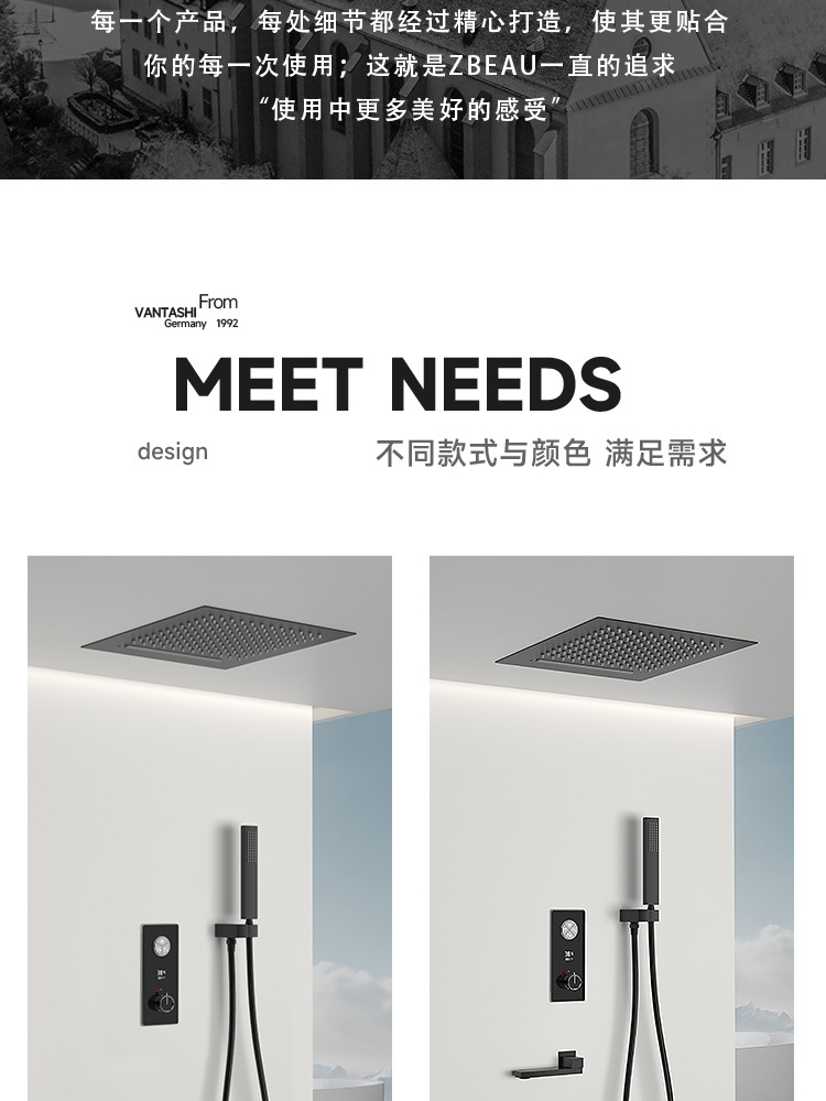 ZBEAU 벽 숨겨진 샤워 모든 구리 뜨겁고 차가운 일정한 온도 가정용 욕실 샤워 세트 미니멀리스트 프레스 비 샤워