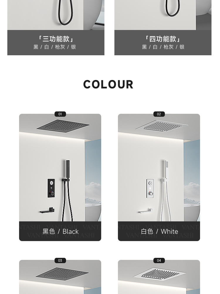 • 순백색(4가지 기능) 레인+폭포+휴대용+하수구