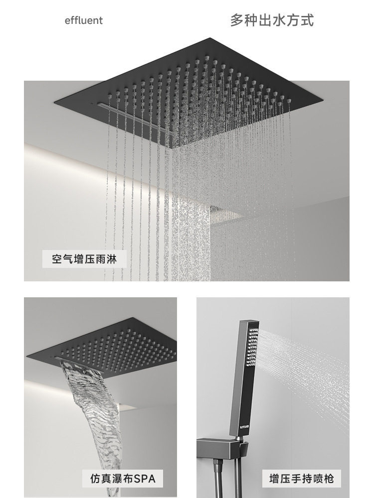 • 매트 블랙(4가지 기능) 레인+폭포+휴대용+하수 배출구