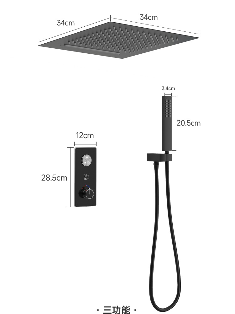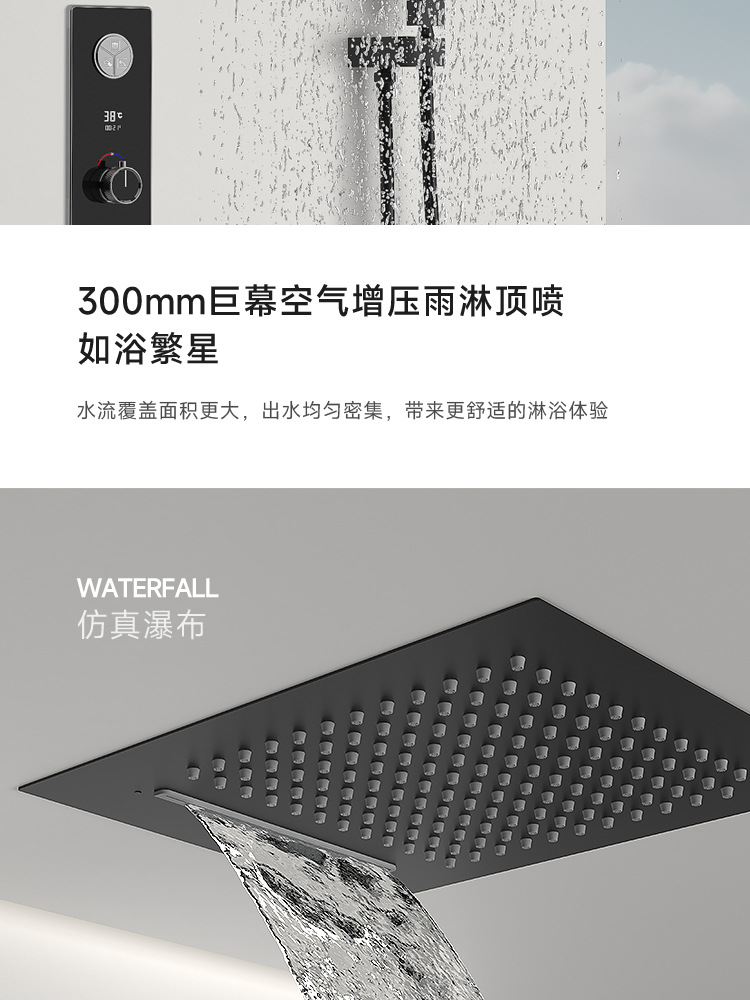 • 매트 블랙(3가지 기능) 레인 + 폭포 + 휴대용