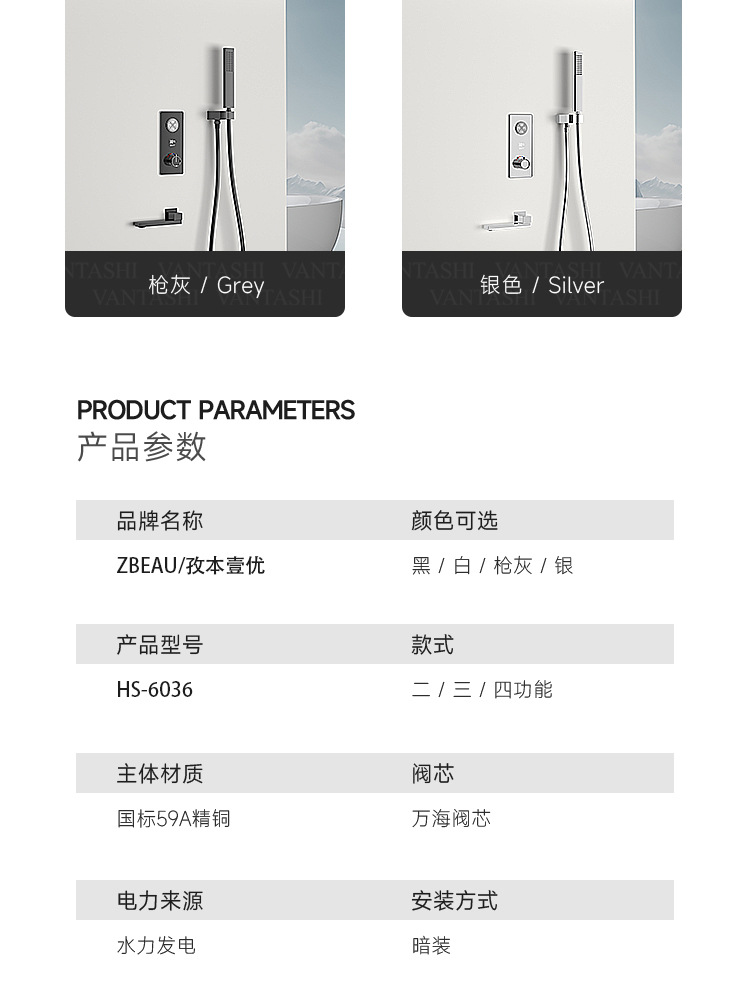 • 글로시 실버(4가지 기능) 레인 + 폭포 + 핸드헬드 + 하부 배수구
