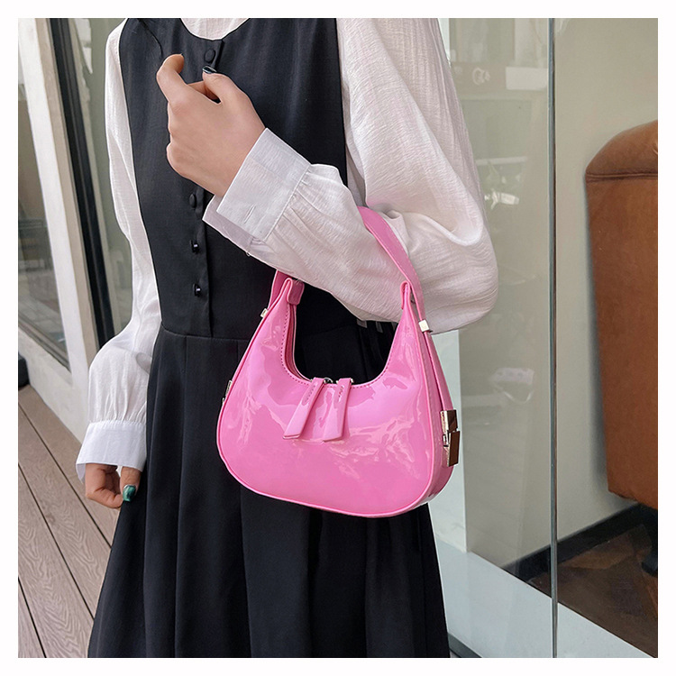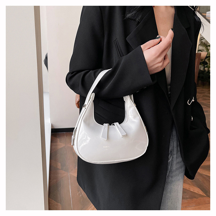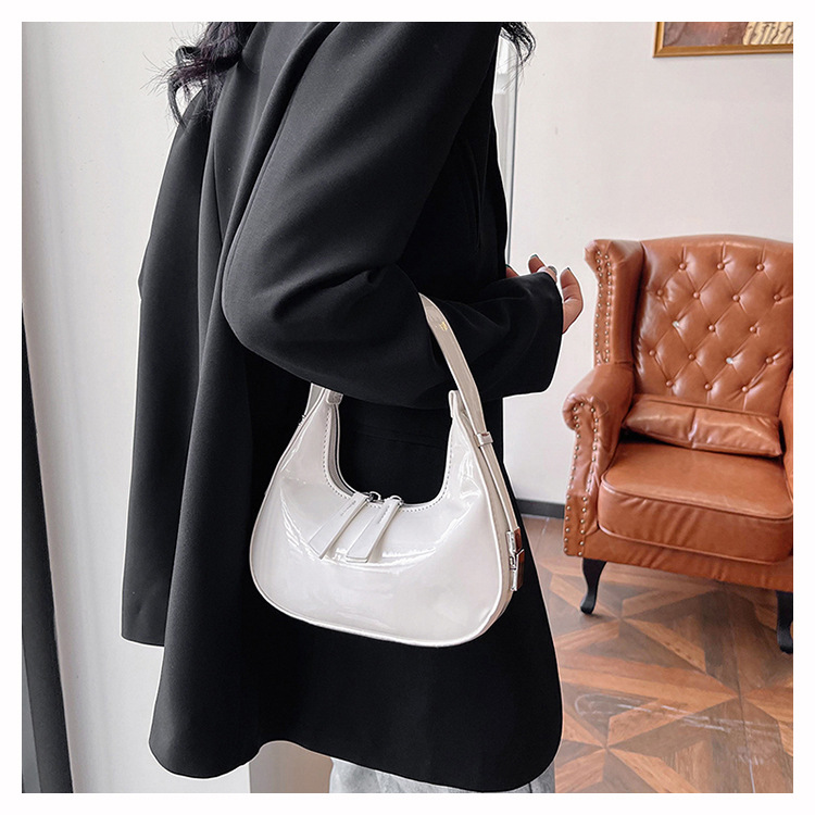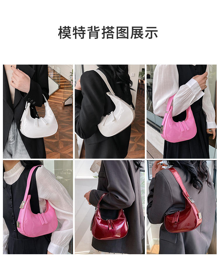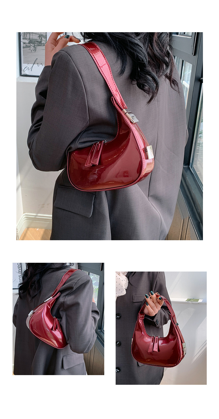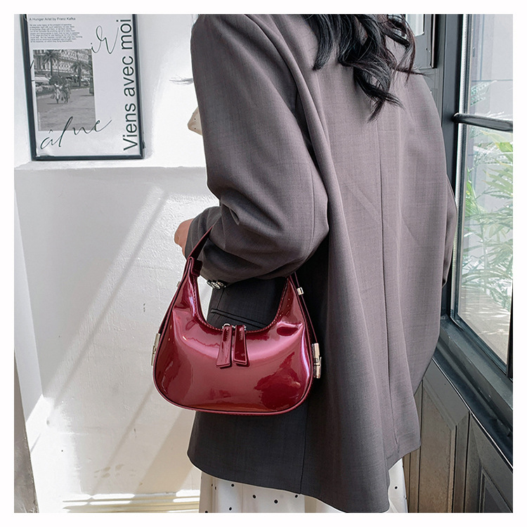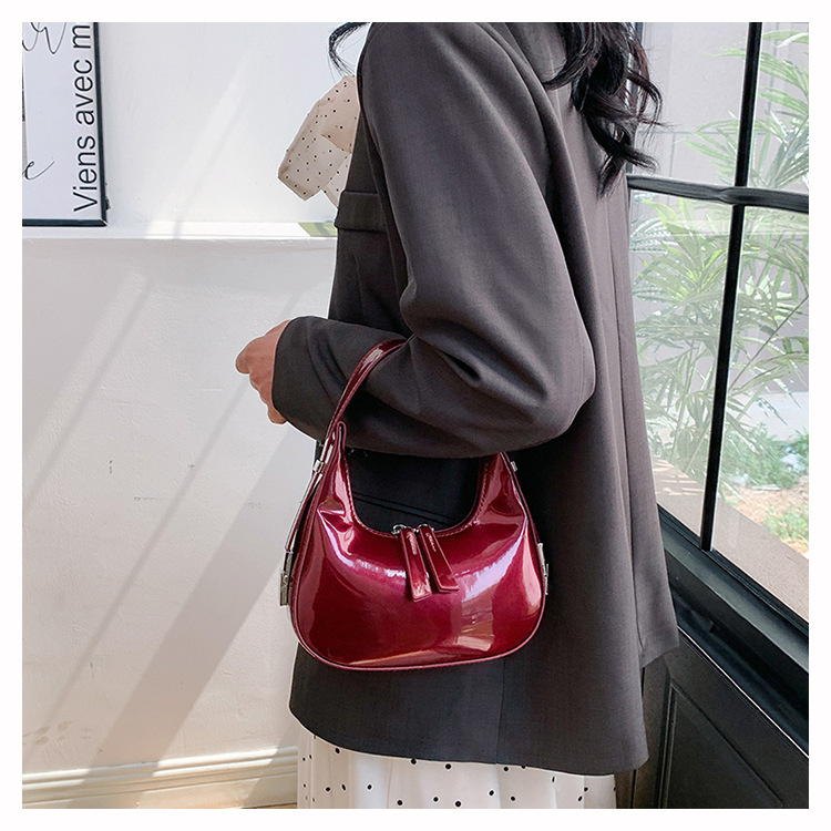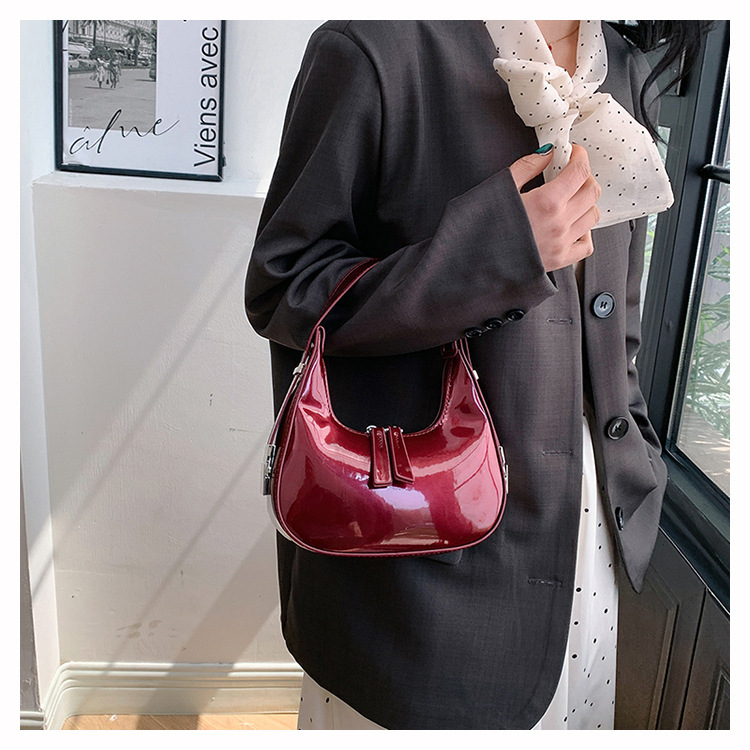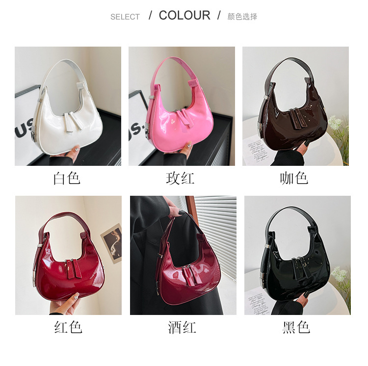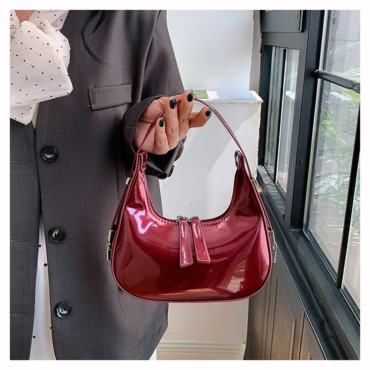 텍스트 틈새 어깨 가방 최신 가방 2024 가을 겨울 올 매치 인기 특허 가죽 초승달 가방 레드 여성용 가방스토어 가기