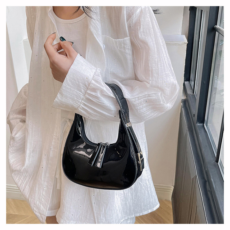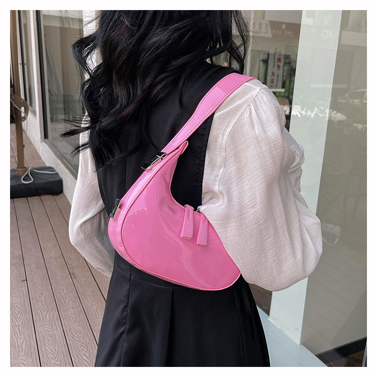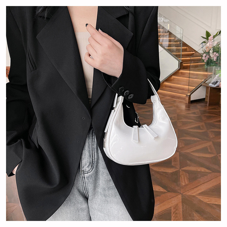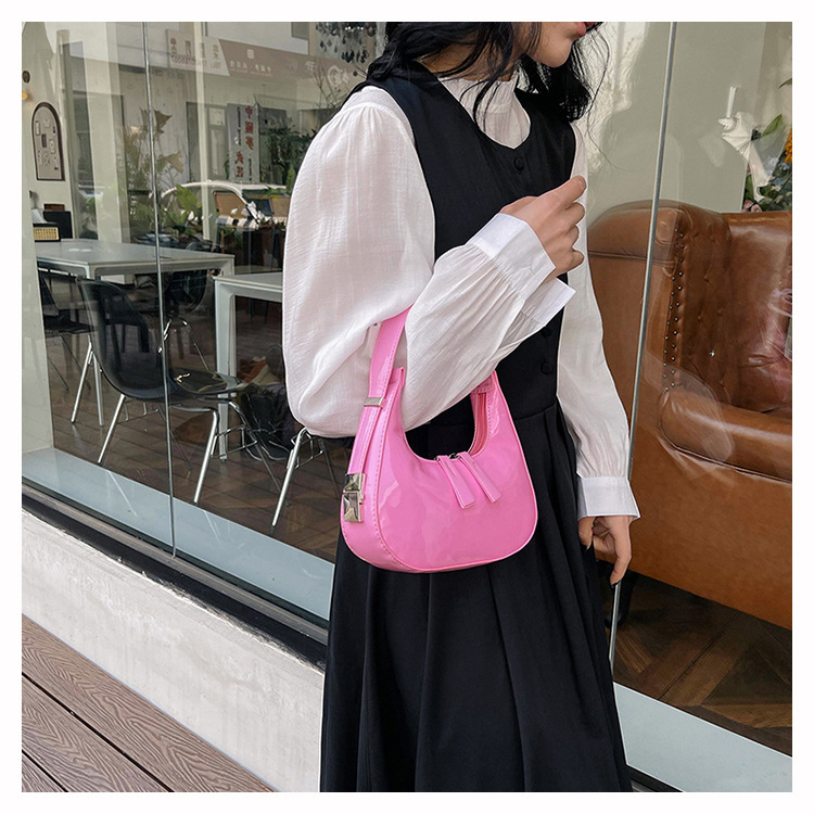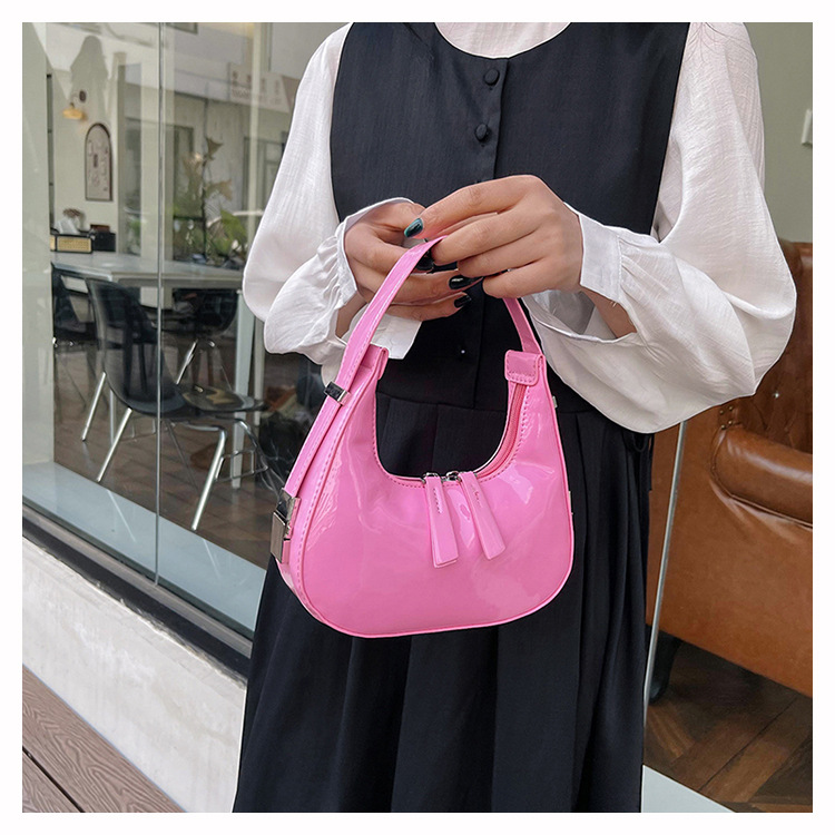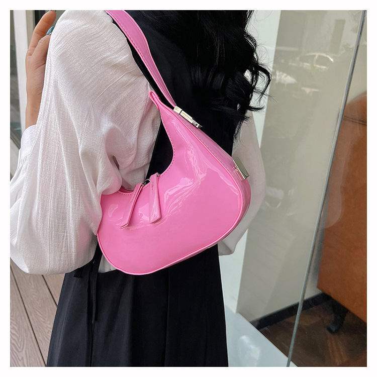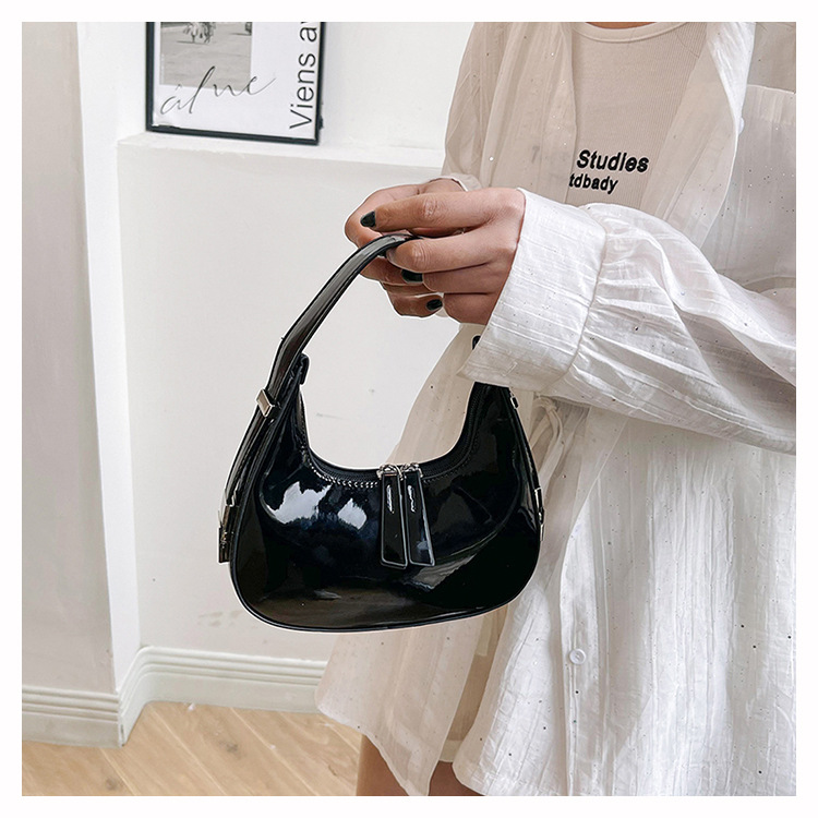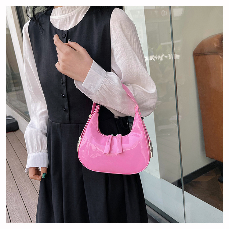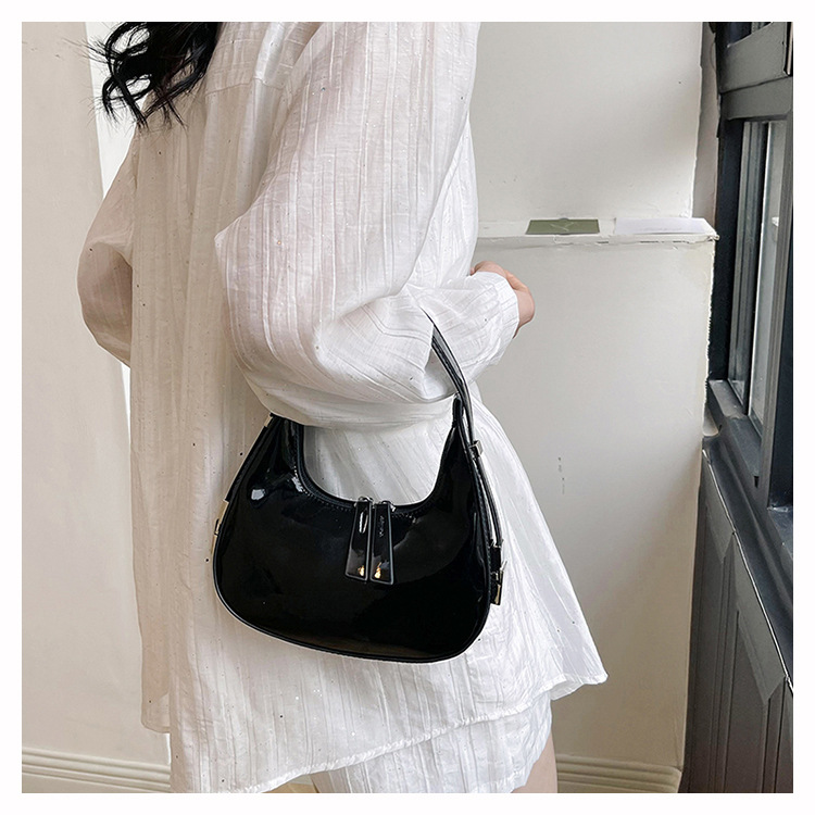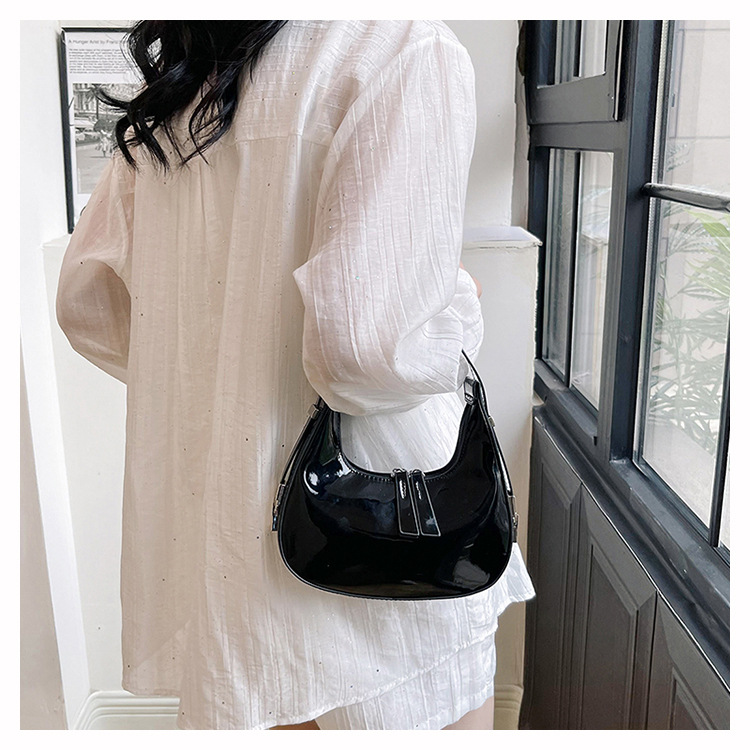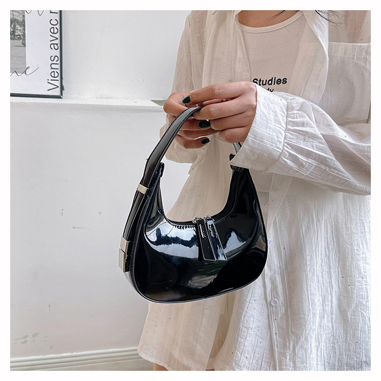 텍스트 틈새 어깨 가방 최신 가방 2024 가을 겨울 올 매치 인기 특허 가죽 초승달 가방 레드 여성용 가방스토어 가기