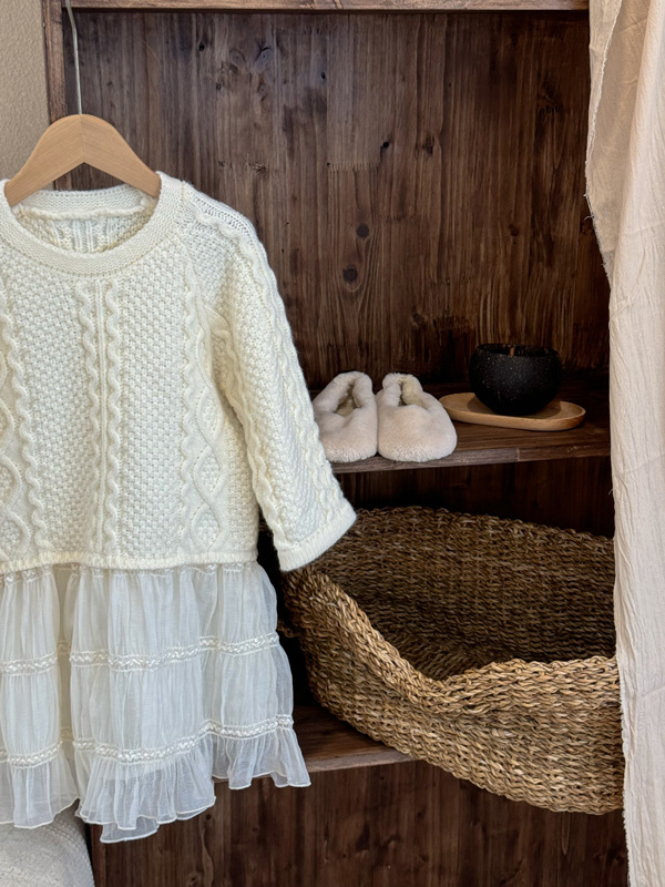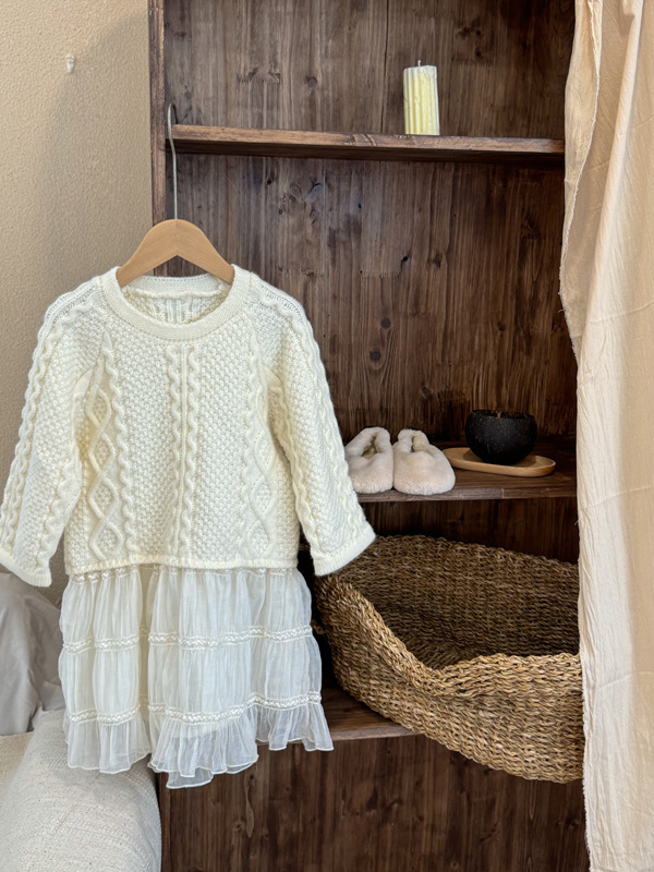 2025 가을 겨울 신상 아동복 한국 스타일 여아용 트위스트 스웨터와 메쉬 원피스 어린이용 니트 공주 드레스스토어 가기