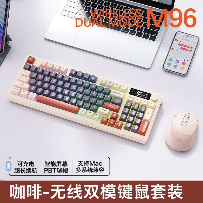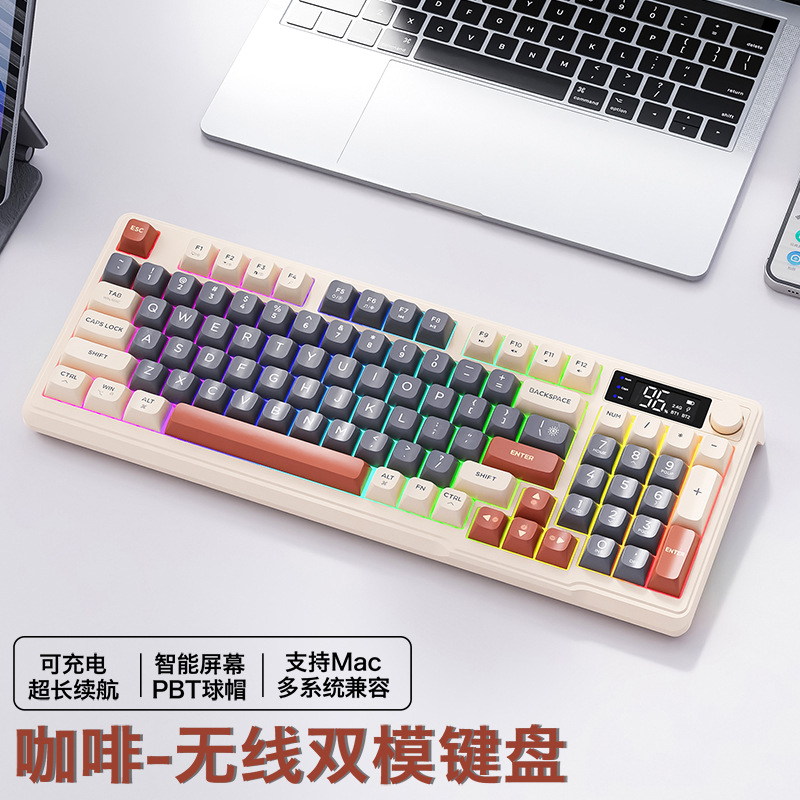• 커피 [싱글 키보드] 다기능 디스플레이 + 듀얼 블루투스 5.0 + 2.4G 무선