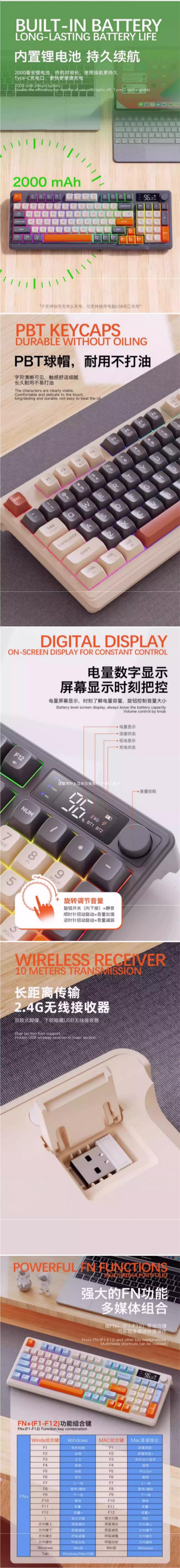 • Blueberry [단일 키보드] 다기능 디스플레이 + 듀얼 블루투스 5.0 + 2.4G 무선
