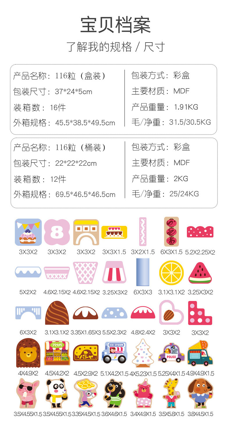 나무 아이스크림 세계 빌딩 블록 116 입자 다채로운 장난감 어린이 퍼즐 빌딩 블록 1-3 세 놀이 집 장난감스토어 가기