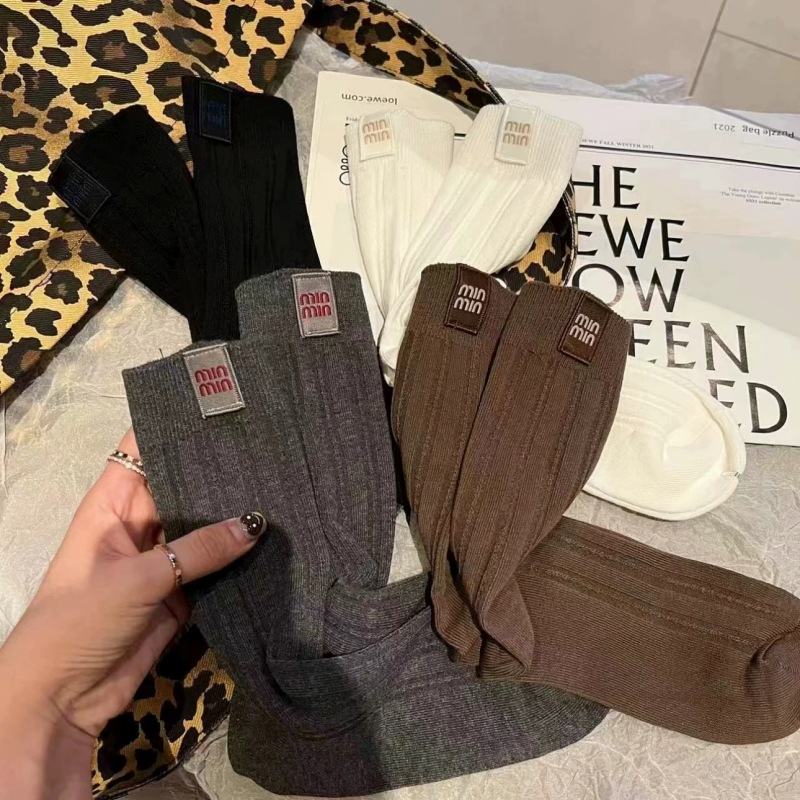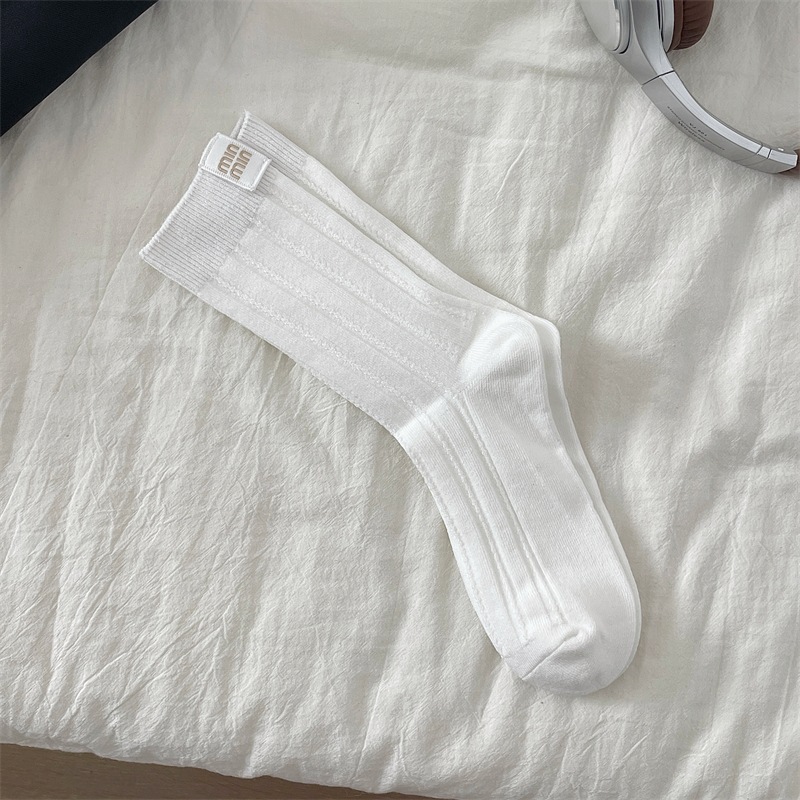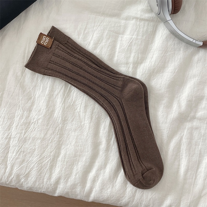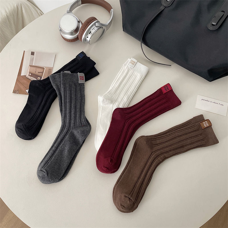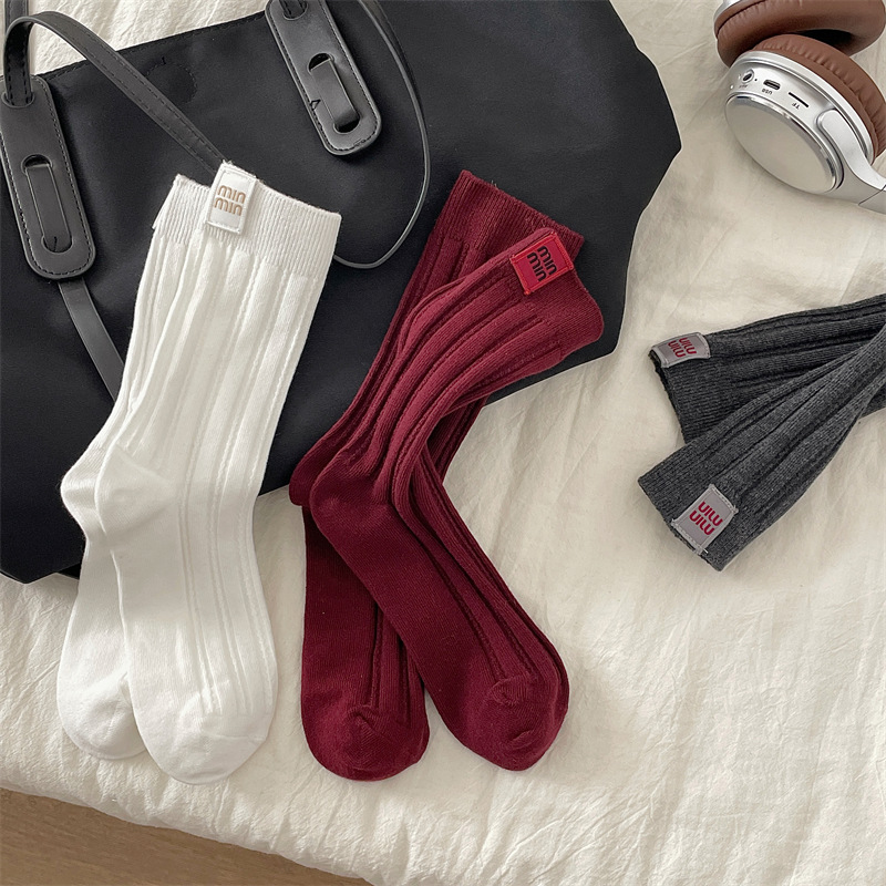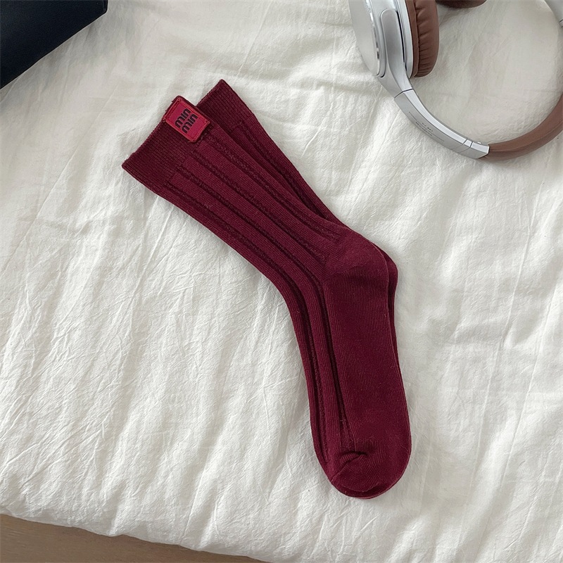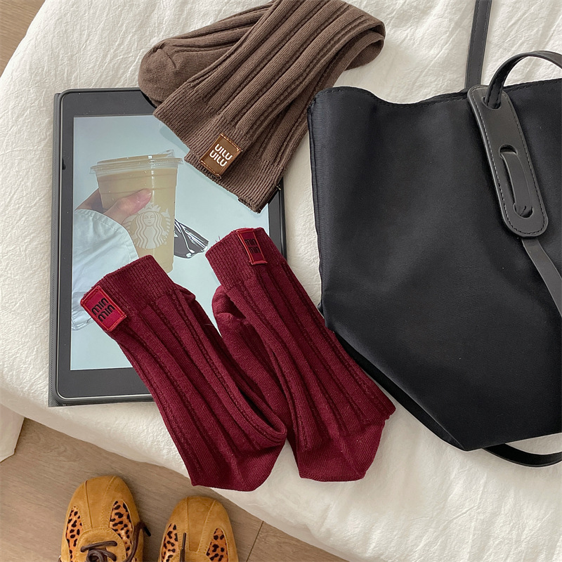 안콜라 레드 유럽 가을 새 편지 천 라벨 미드 튜브 양말 어린이 고급 수직 줄무늬 인터넷 인기 더미 양말