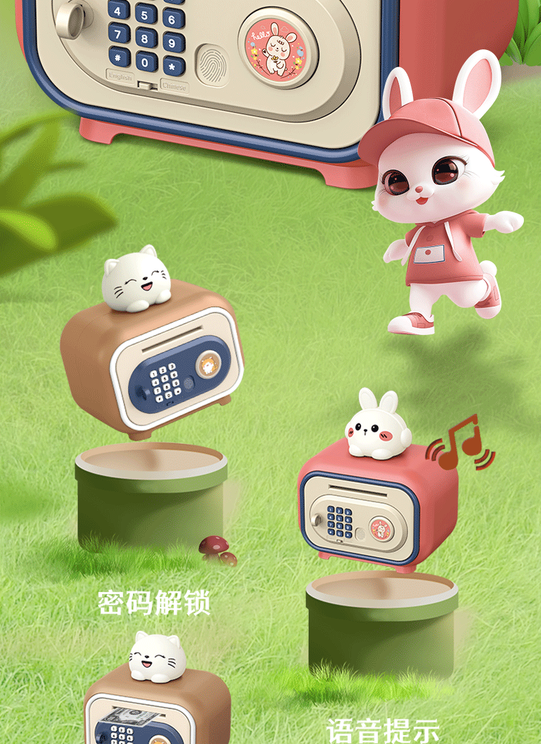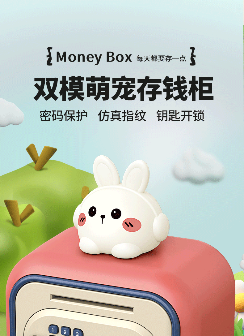 • 핑크 토끼 저금통 [지문 비밀번호] 컬러 박스