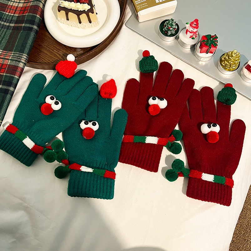2024 년 새로운 국경 크리스마스 장갑 올해 빨간 어린이 양말 재미있는 따뜻한 다섯 손가락 장갑 조수