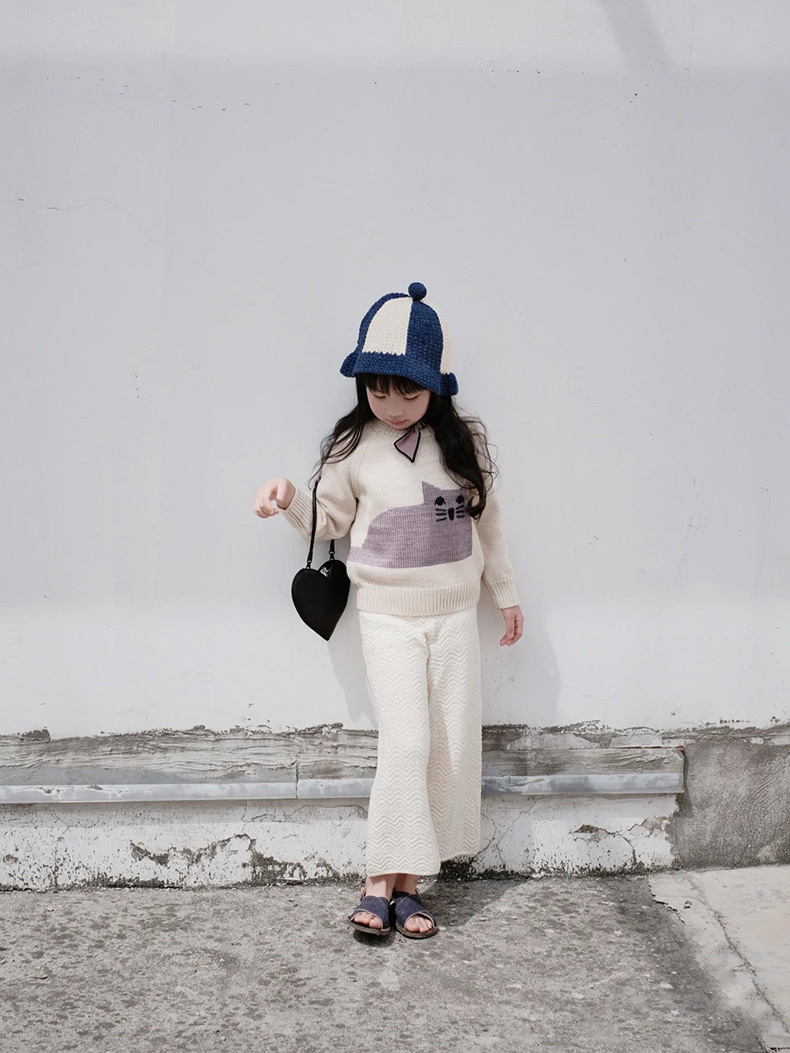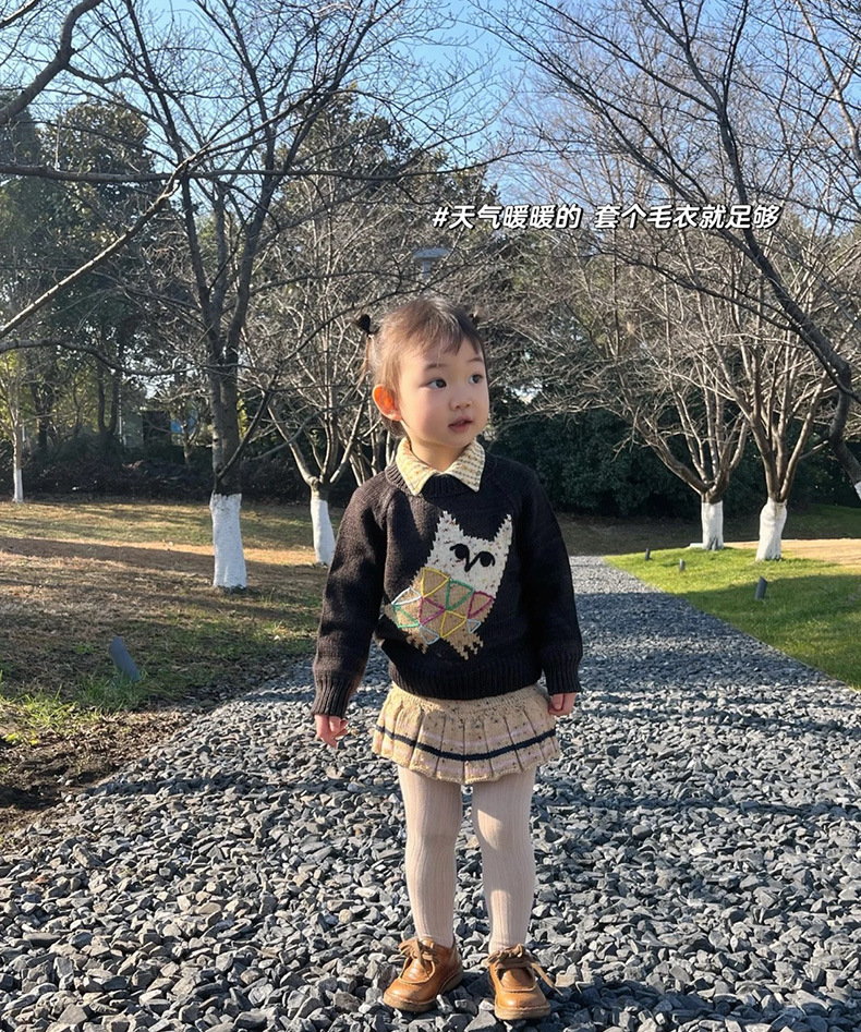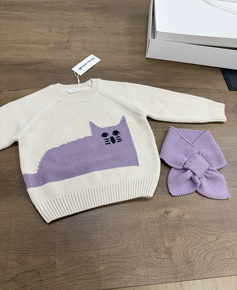 새로운 중공업 자수 올빼미 니트 스웨터 어린이용 가을 겨울 보라색 검정색 만화 스웨터 풀오버