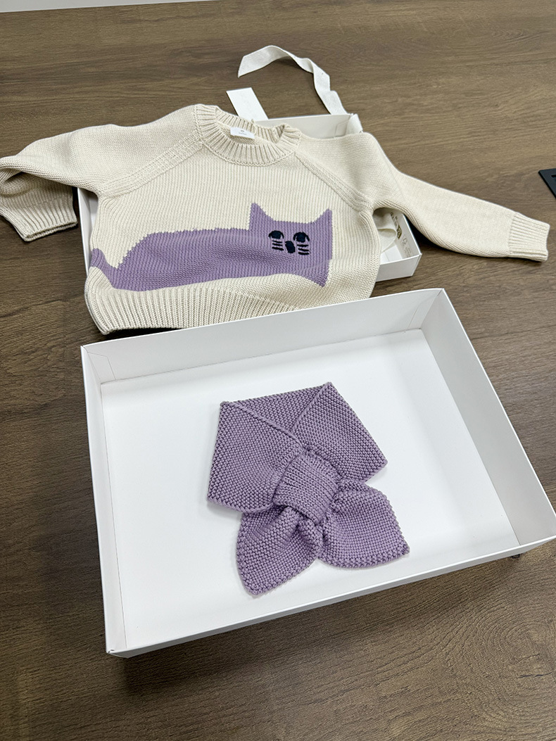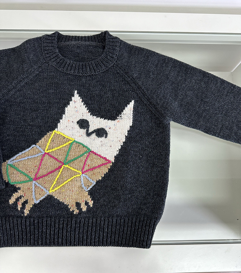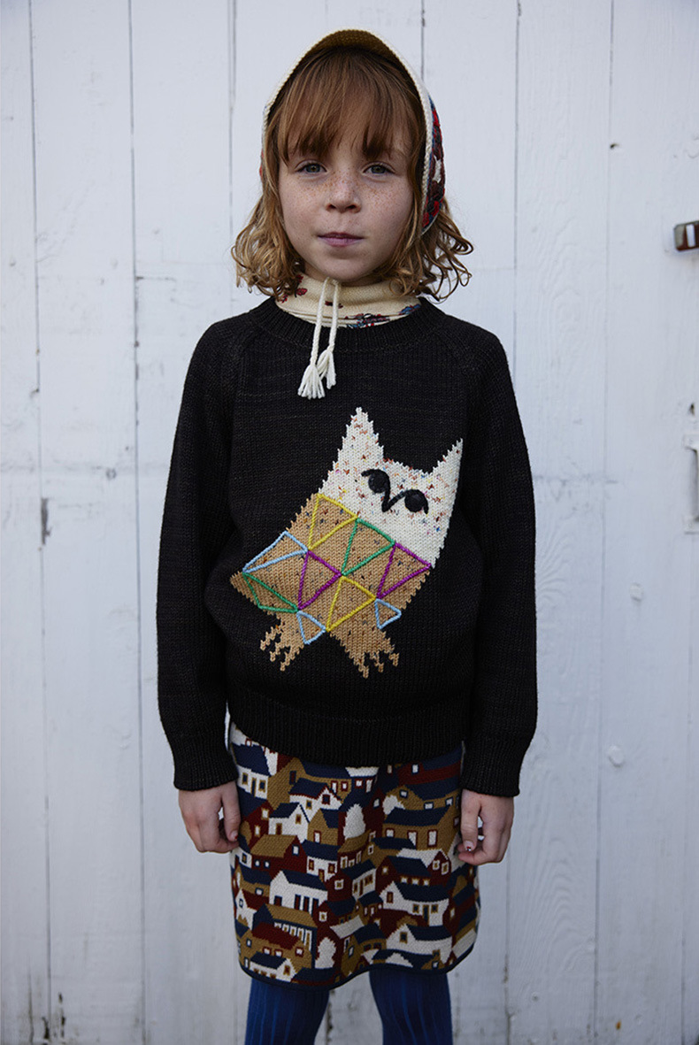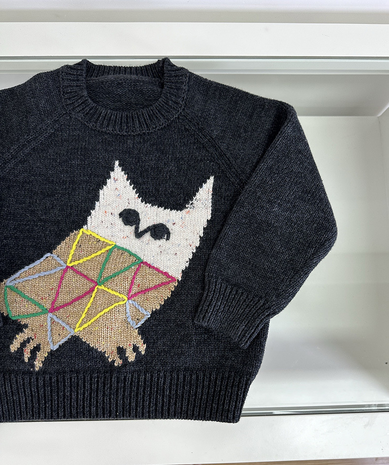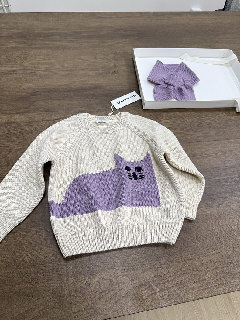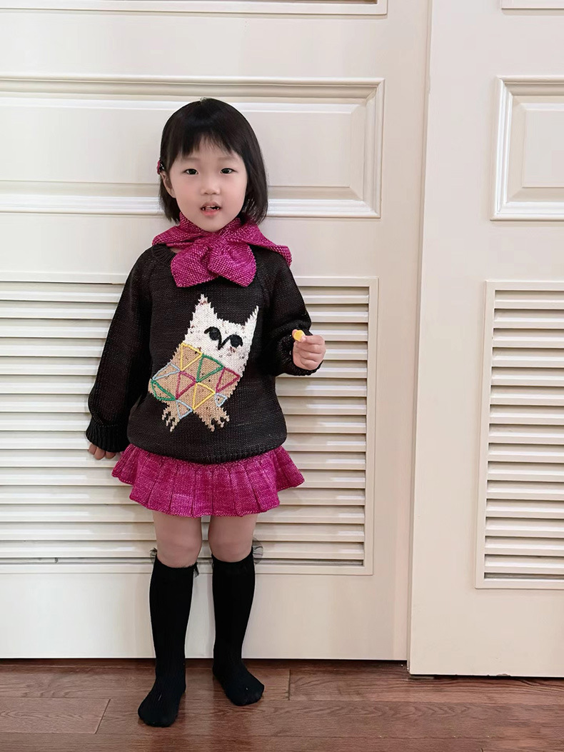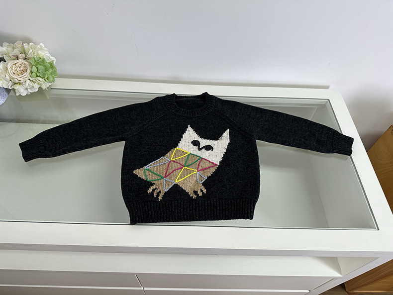 새로운 중공업 자수 올빼미 니트 스웨터 어린이용 가을 겨울 보라색 검정색 만화 스웨터 풀오버스토어 가기