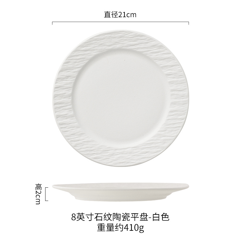 • 8inch 스톤 패턴 얕은 접시 [하유색 흰색]